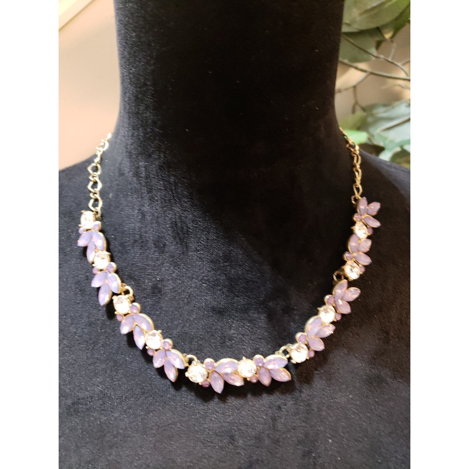 Womens Purple Clear Rhinestone Glam Necklace with Elegant Earrings.