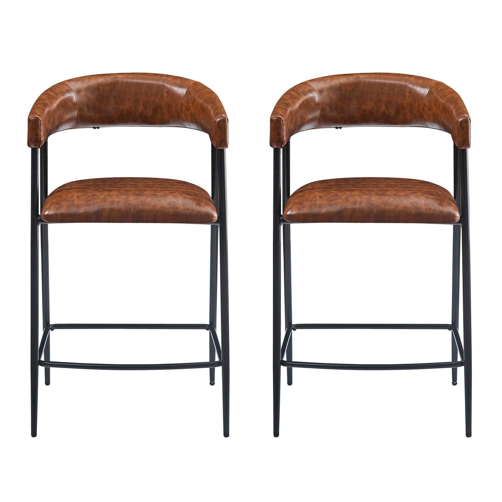 Brown Pu Leather Counter Stools with Backrest (Set of 2)