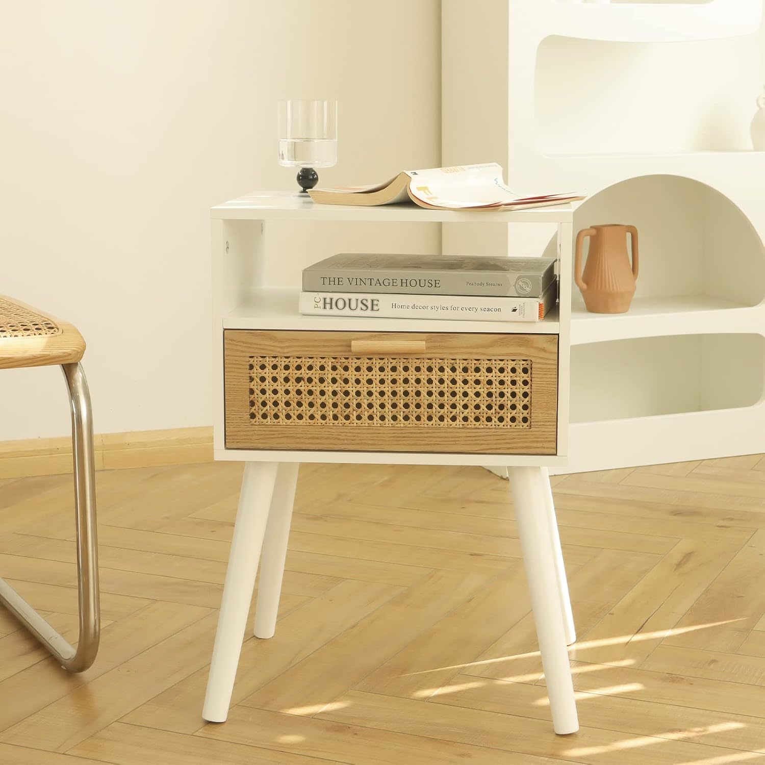 Maxsmeo White Nightstand With Drawer, Mid and 49 similar items