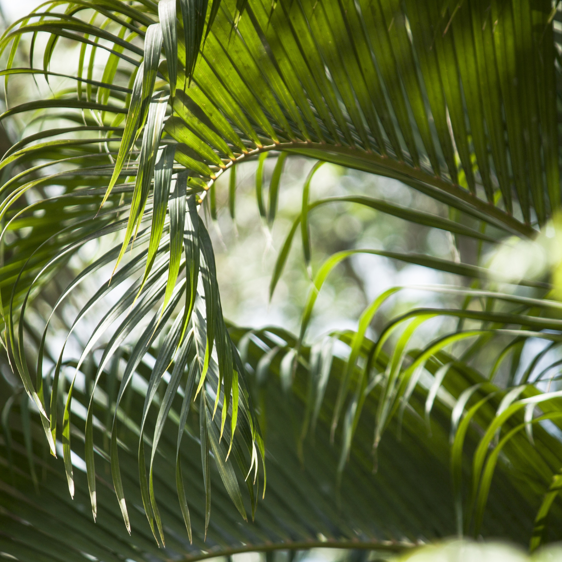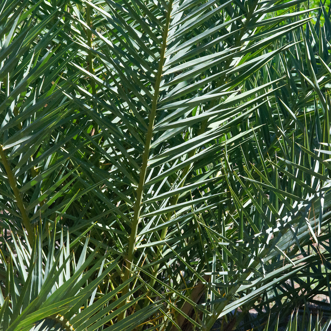 - Evergreen, palm tree with a distinctive, bottle-shaped trunk and feathery, green leaves