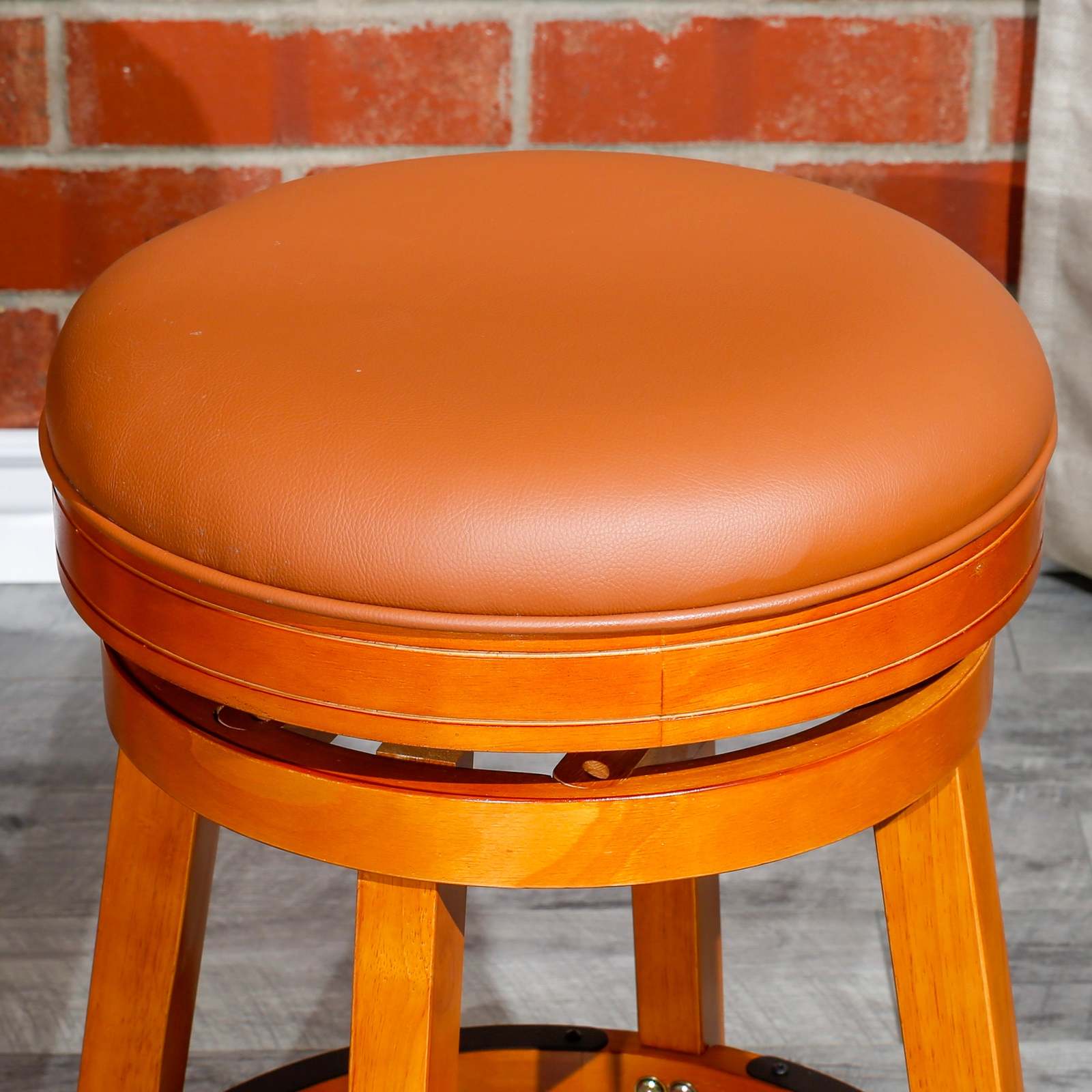 Create a stylish and functional dining or bar space with this backless swivel stool. The classic design and neutral color palette are sure to enhance any decor. The stool is complemented by the padded bonded leather seat and flared leg. These sturdy stools are built with a solid hardwood frame and a round footrest with metal plates to protect the stool from footwear damage. This stool is available in two sizes, four finishes and a variety of bonded leather and fabric colors.