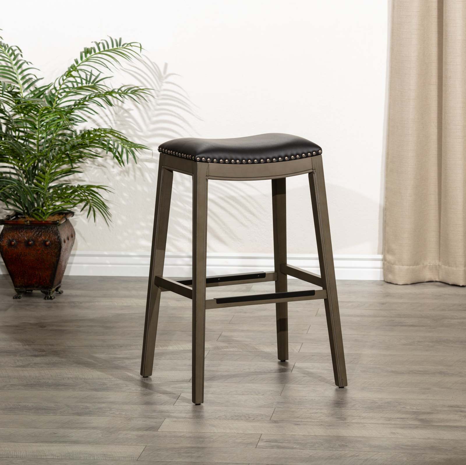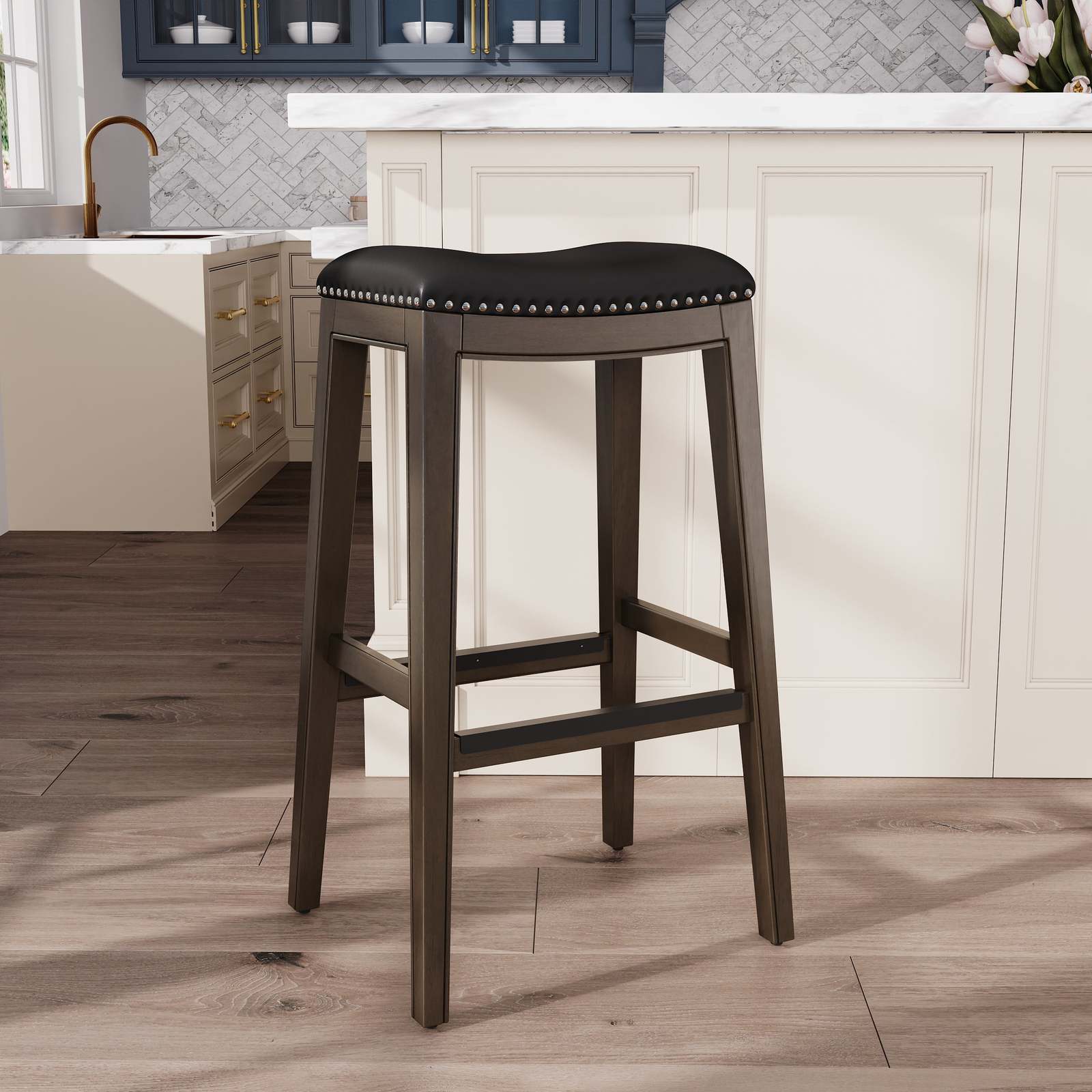 30' Bar Height Saddle Stool, Weathered Gray, Black Leather