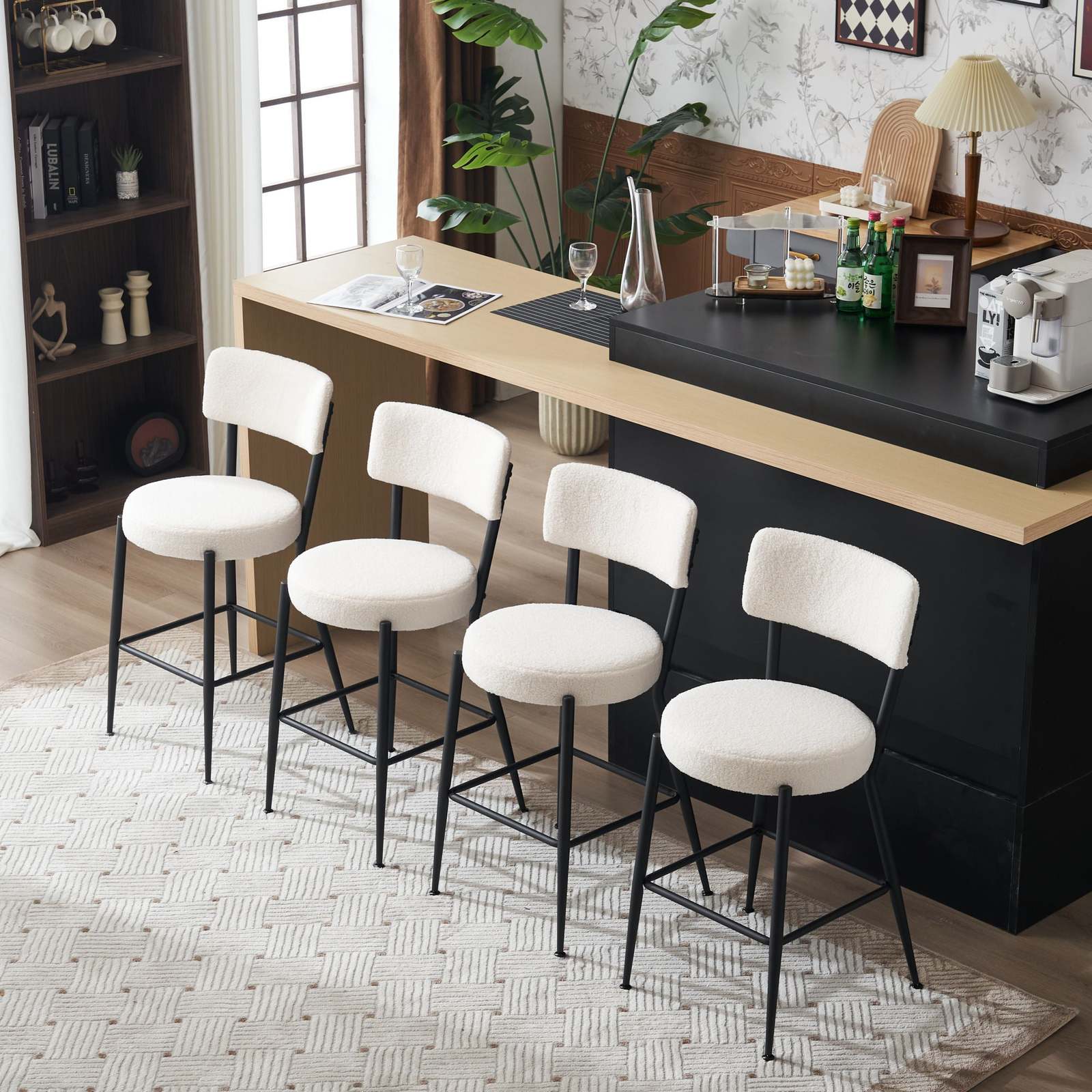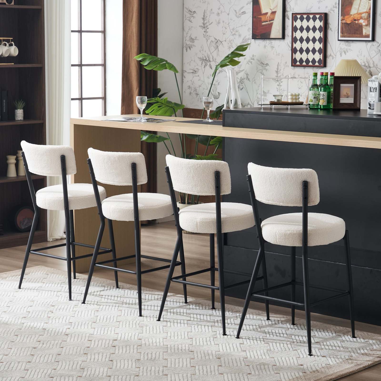 ENJOY LUXURY: The stool set's cushions and backrests are made of cozy, skin-friendly teddy fleece fabric and resilient foam, providing you with a truly comfortable sitting experience.