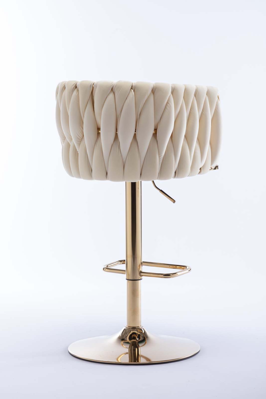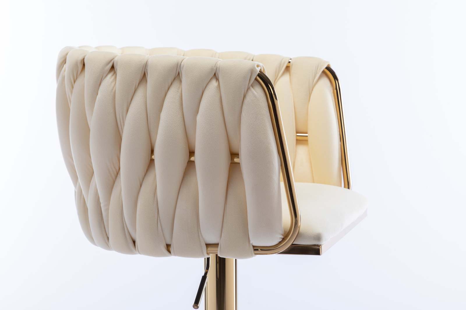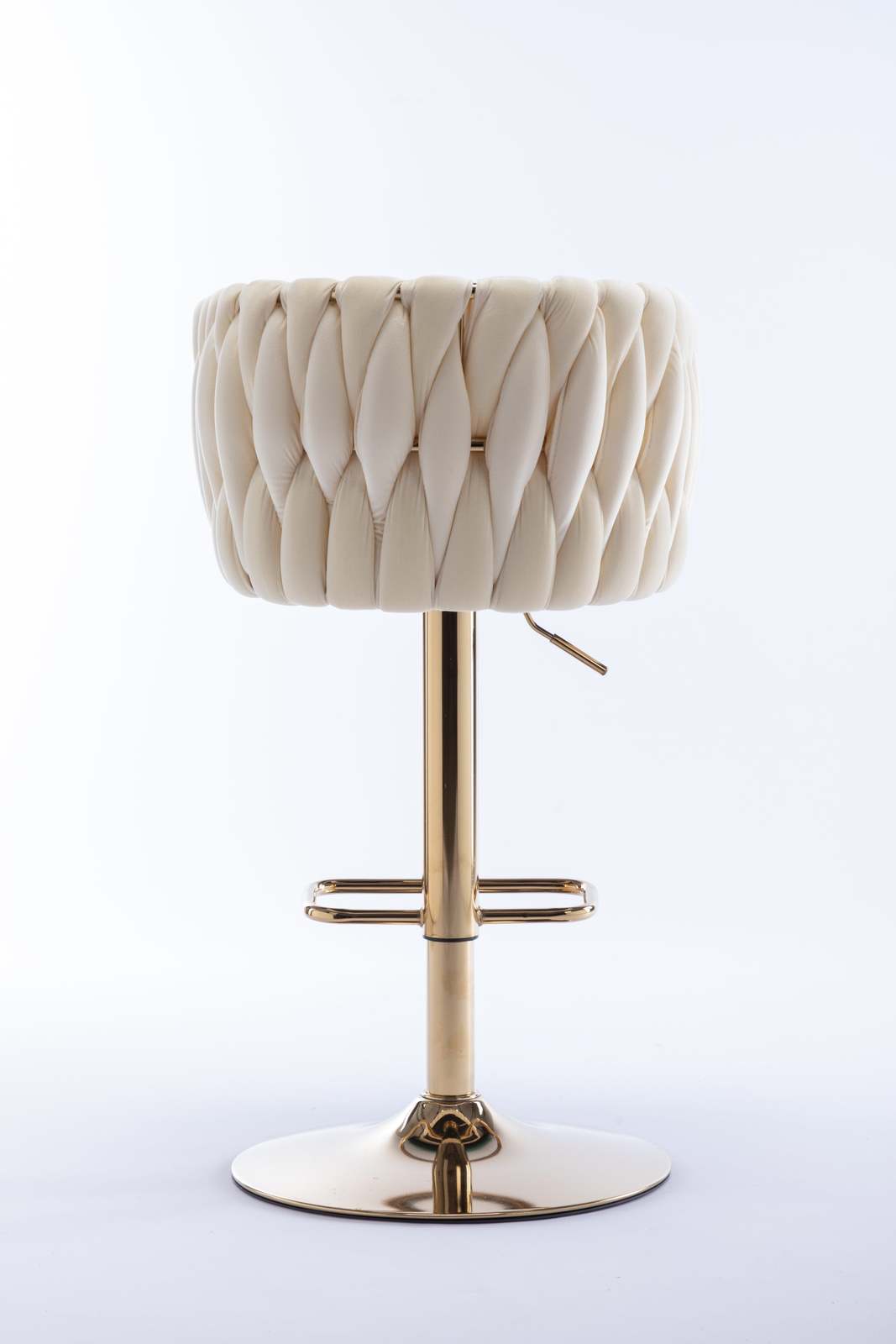 bar stool is made of gold metal and velvet fabric, woven to create a very eye-catching design. Perfect for restaurants, kitchens, cafes, offices, bars, exhibitions, or any other decor theme, it fits your space and your home more seamlessly so you can create a fun and original atmosphere.