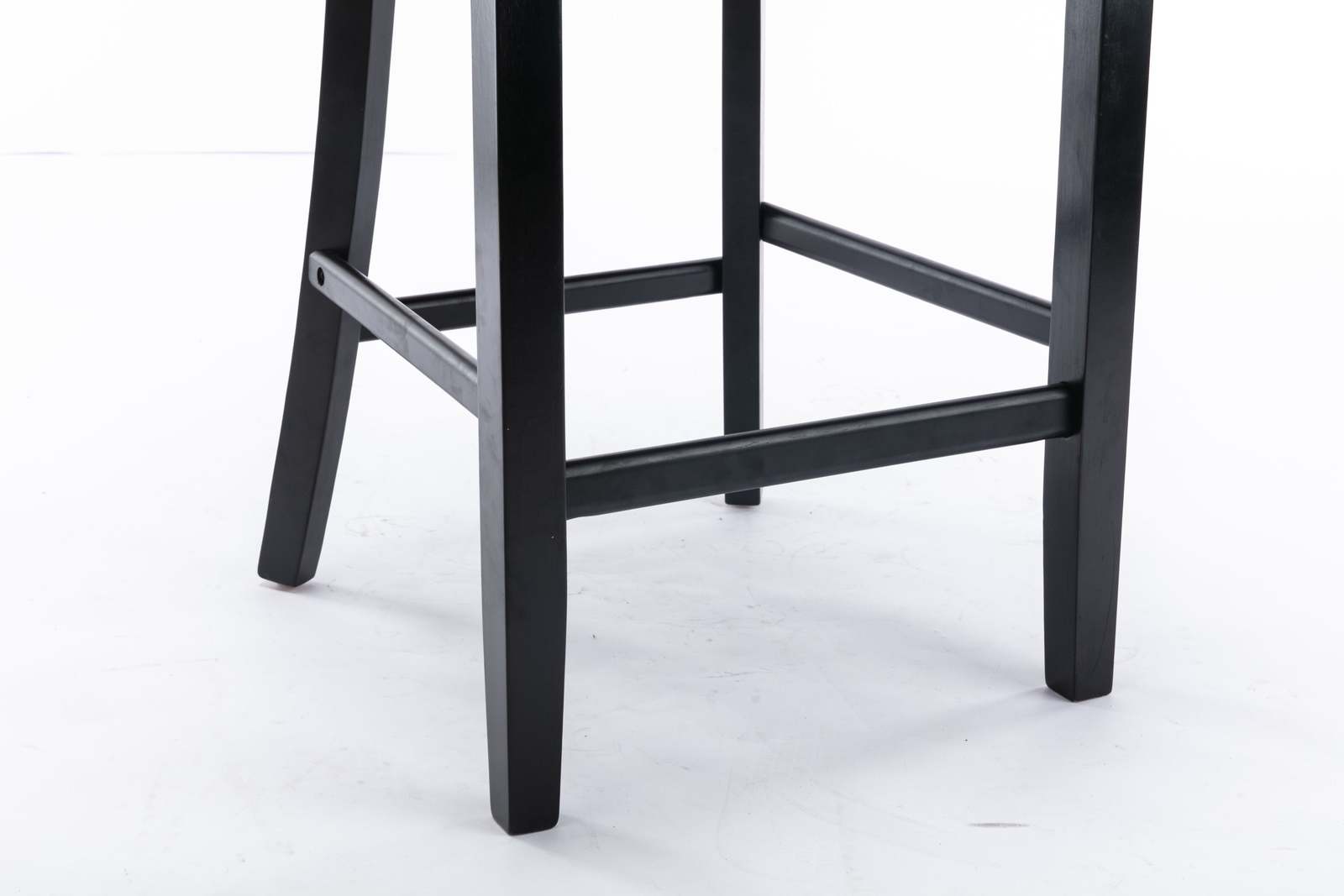 The bar chair's frame and legs are made of solid wood with enough security to hold up to 300 pounds. Please use the instructions and assembly tool inside the package to complete the assembly. Adjustable pegs on the legs allow you to adjust the height of the legs.