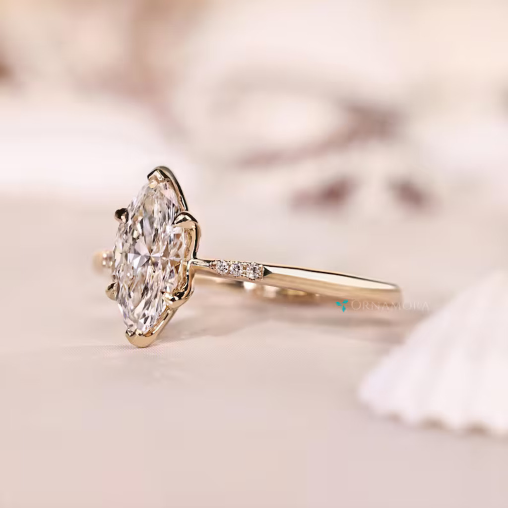 Elegant Marquise Diamond Ring in Yellow Gold - 0.50 to 5 CT Lab Grown Diamond