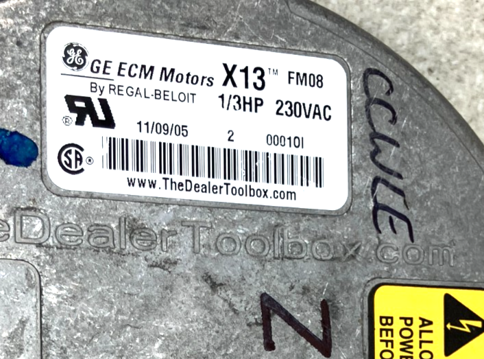 This is GE ECM X13 FM08 Module Only1/3 HP 230V CCW LE rotation, used part. Motor not included, for sale is module only.