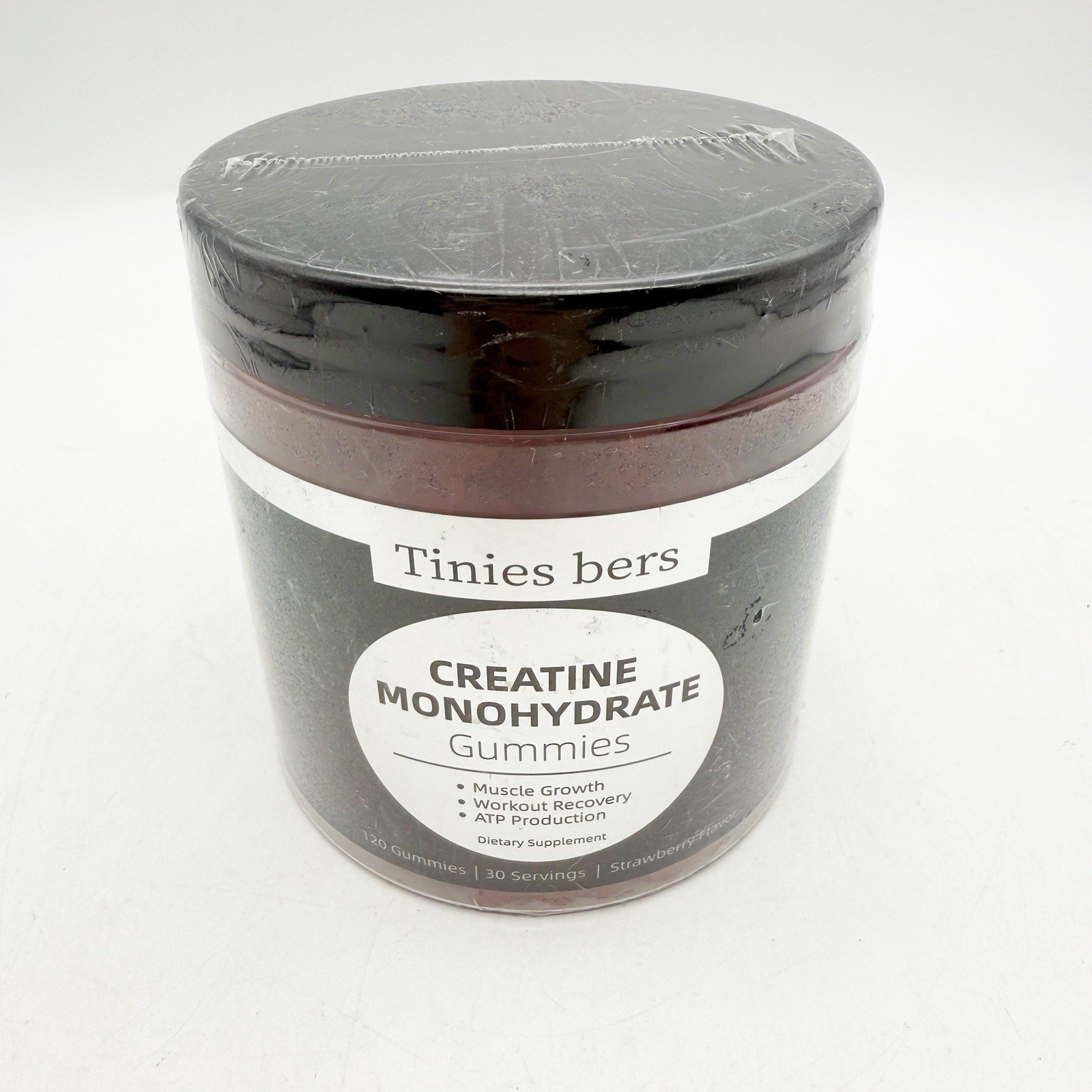 Tinies bers Creatine Monohydrate Gummies Sugar Free Strawberry 120 Ct Exp 11/25. Packaging shows minor wear and tear.