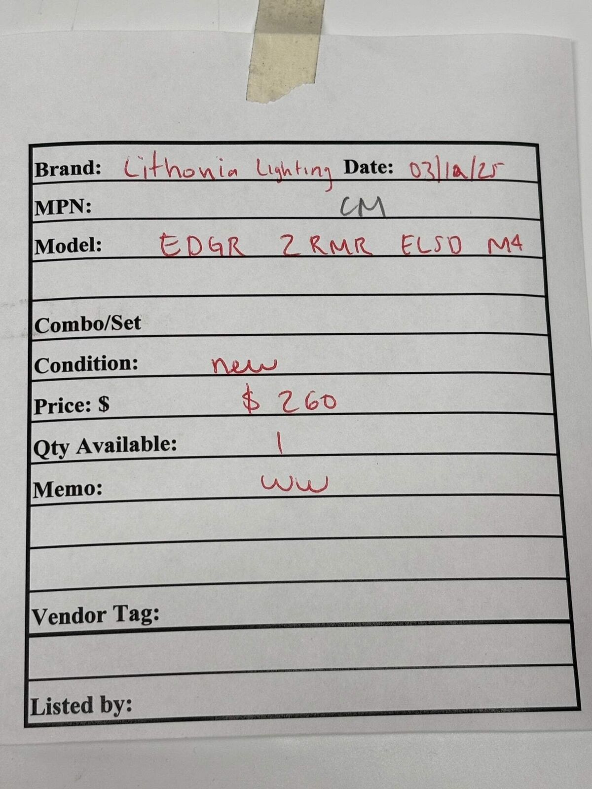 Lithonia Lighting EDGR 2 RMR EL M4 Recessed LED Edge-Lit Exit Lithonia lighting led edge-lit exit sign red, double face, red on mirror, nickel-cadmium battery Ensures everlasting service life Expertly made from premium materialsSpecifications Light Color: Red Watts: 3.8 Features. Lithonia lighting led edgelit exit sign red, double face, red on mirror, nickelcadmium battery. Ensures everlasting service life. Expertly made from premium materialsSpecifications. Light Color Red. Watts 3.8. Type Dual Face w/ Battery Backup. Number Of Faces Double. About Us Welcome to Help! Resale, your go-to consignment shop where value meets quality. At Help! Resale, we're dedicated to providing you with an exceptional shopping experience, whether you're looking to find the best deals or consign your gently used items. Help Resale 7200 Fair Oaks Blvd Ste 120 Carmichael CA 95608 Business Hours: Monday-Friday: 9:00 am to 5:30 pm (PST) All product and company names are trademarks TM or registered trademarks of their respective holders. Use of them does not imply any affiliation with or endorsement by them.