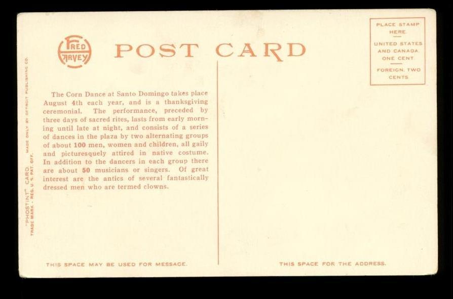 Vintage Harvey Postcard The Corn Dance Pueblo Indians Santo Domingo New Mexico