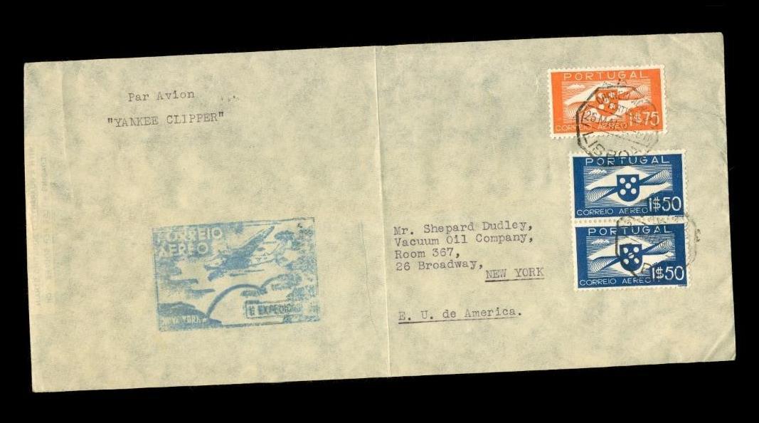 Vintage Postal History Commercial Cover Air Mail Yankee Clipper Portugal to USA