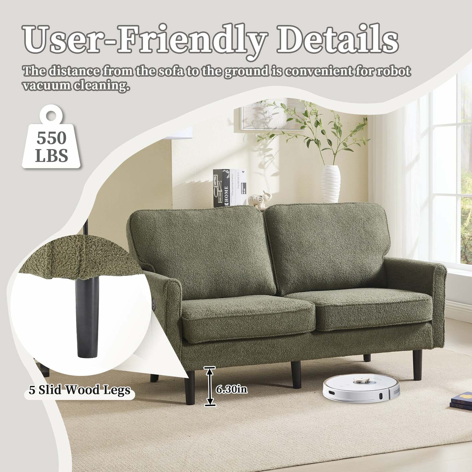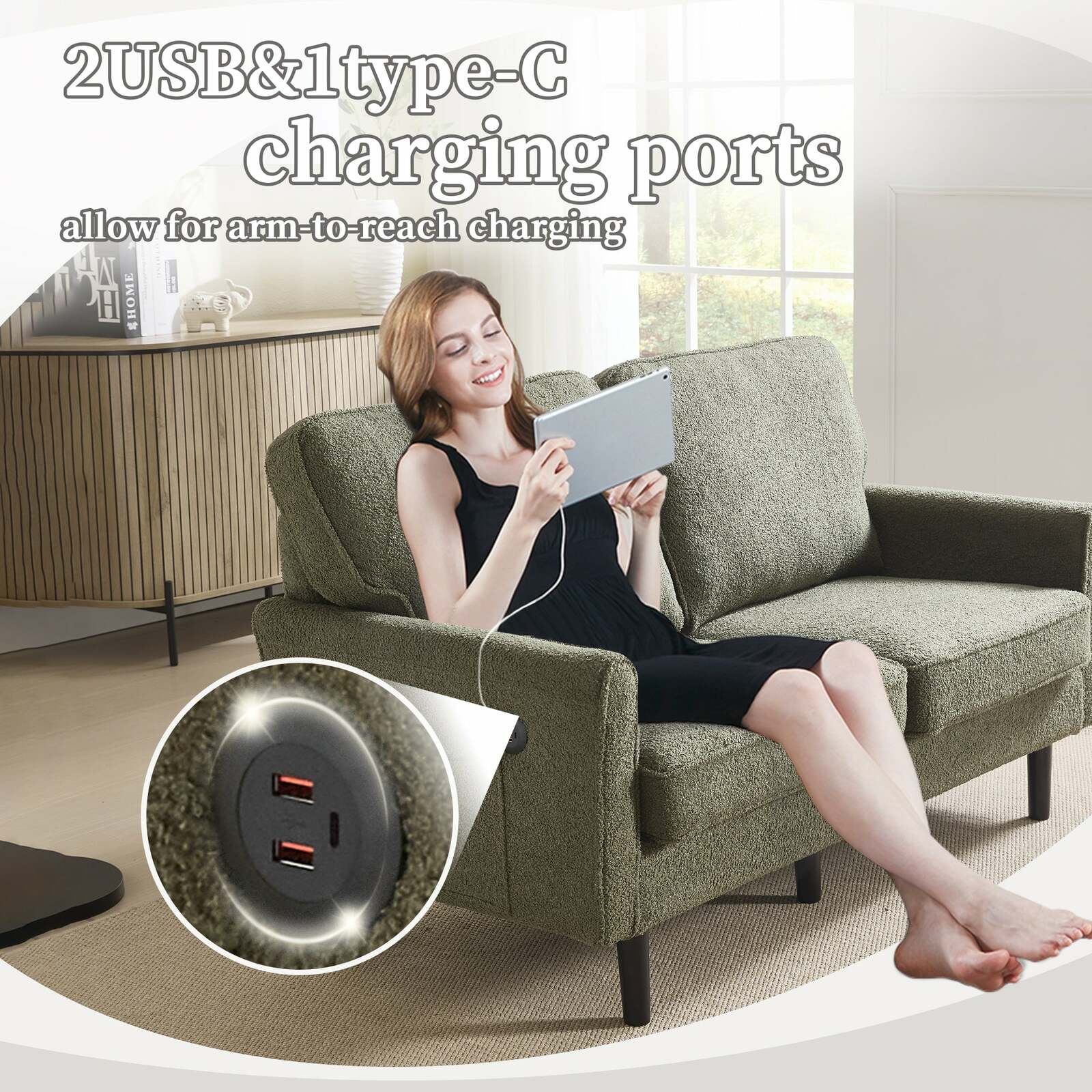 Multifunctional Sofa Wood Legs: This loveseat is equipped with USB Type C ports, easily charge your phone at work or at leisure. Our couches features sturdy structure, strong solid wood legs ensures stability and easily support up to 550 lbs.