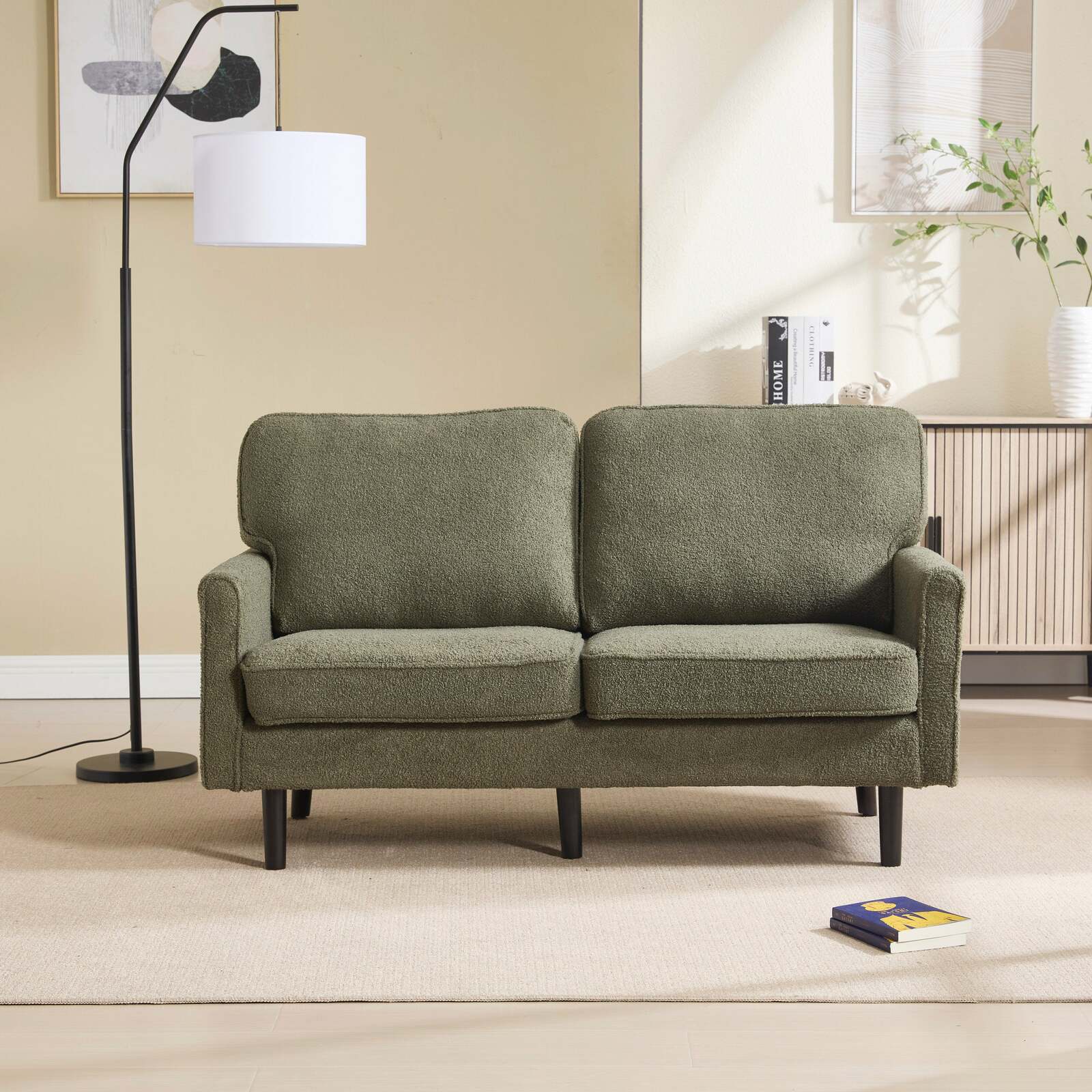 Sofa couch with breathable boucle fabric, stain-resistant and skin-friendly; The backrest cushion cover has a zipper which can be easily removed for you to take them off and wash, durable and long lasting.
