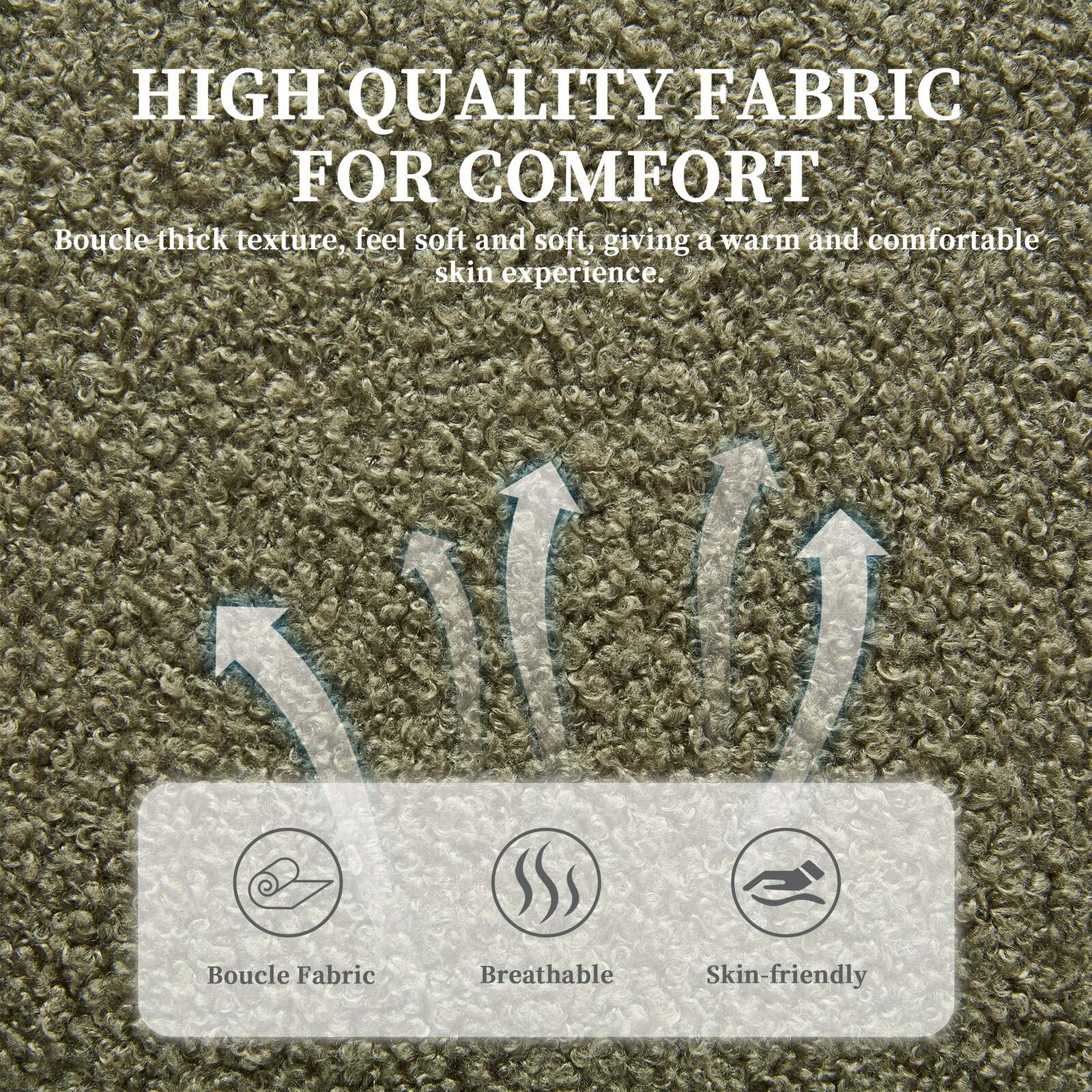 Detachable Cover Breathable Fabric: Sofa couch with breathable boucle fabric, stain-resistant and skin-friendly; The backrest cushion cover has a zipper which can be easily removed for you to take them off and wash, durable and long lasting.