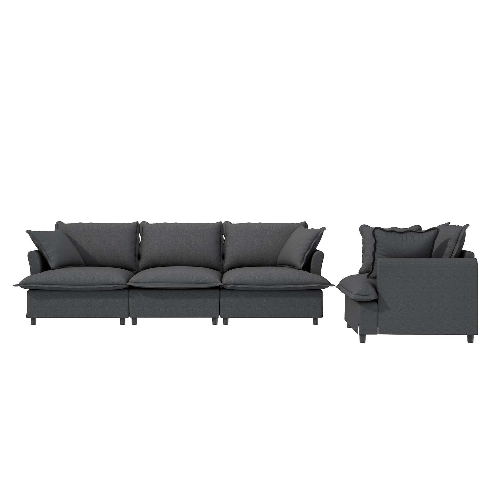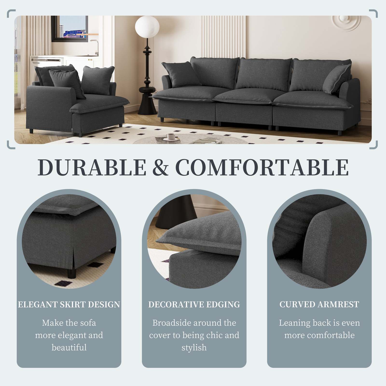 Discover endless possibilities with our modular sofa! Featuring three movable modules?three-seater, single seat, and ottoman?you can easily customize the layout to fit any space. Need more? Simply purchase additional modules as needed. Perfect for various room sizes and interior styles, its elegant skirted seat design and petal-shaped armrests bring a touch of sophistication to your home. Enjoy versatile, stylish comfort with our adaptable, modular design!