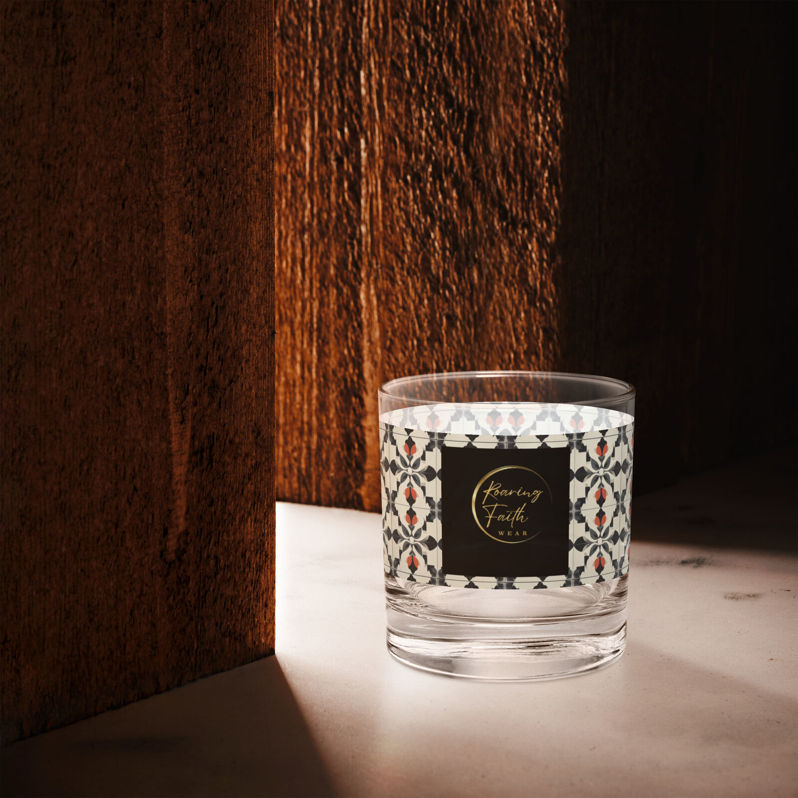 Retro Blooming Mosaic Rocks Glass – Vintage-Inspired Decorative Drinkware