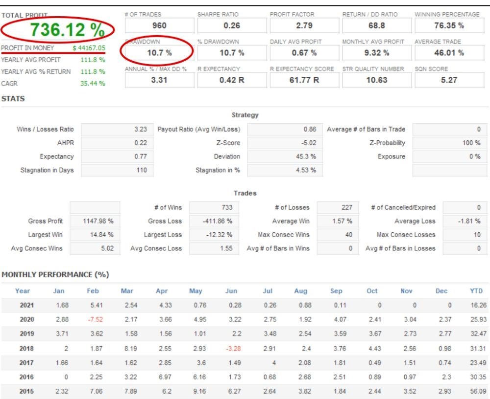 Low Drawdown with High Win Rate: Conservative settings, aggressive results.