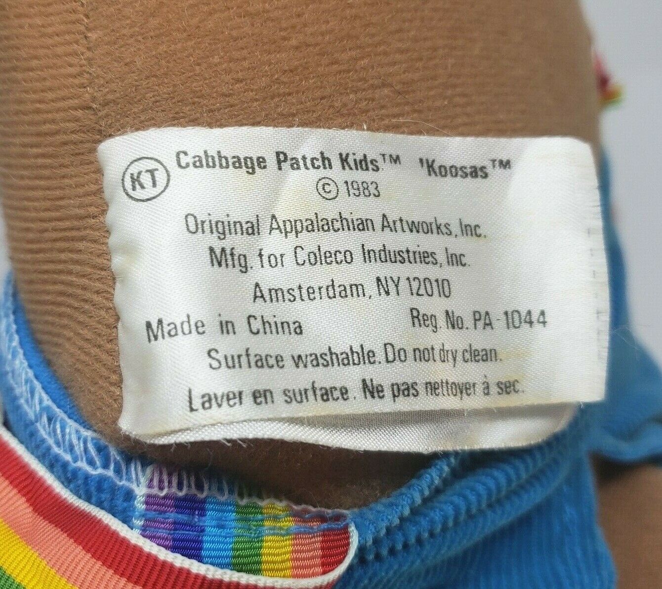 VINTAGE 1983 CABBAGE PATCH KIDS KOOSAS DOLL STUFFED ANIMAL PLUSH TOY BLUE PANTS