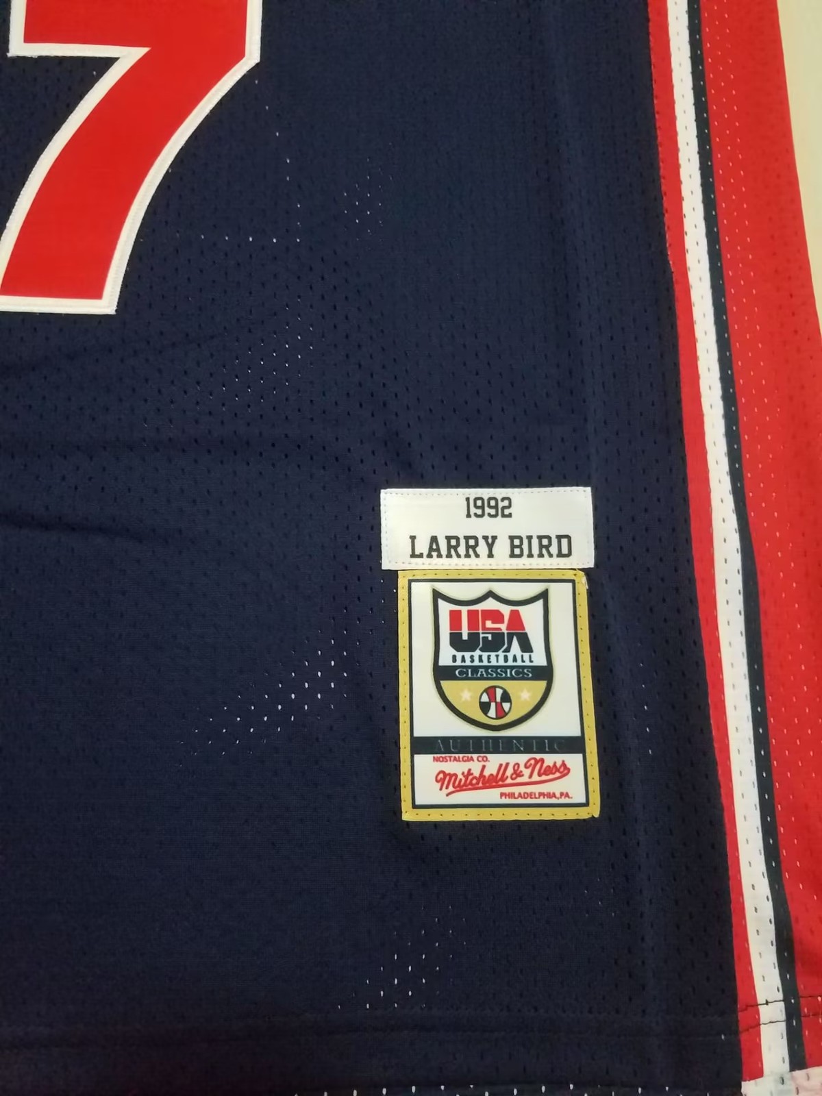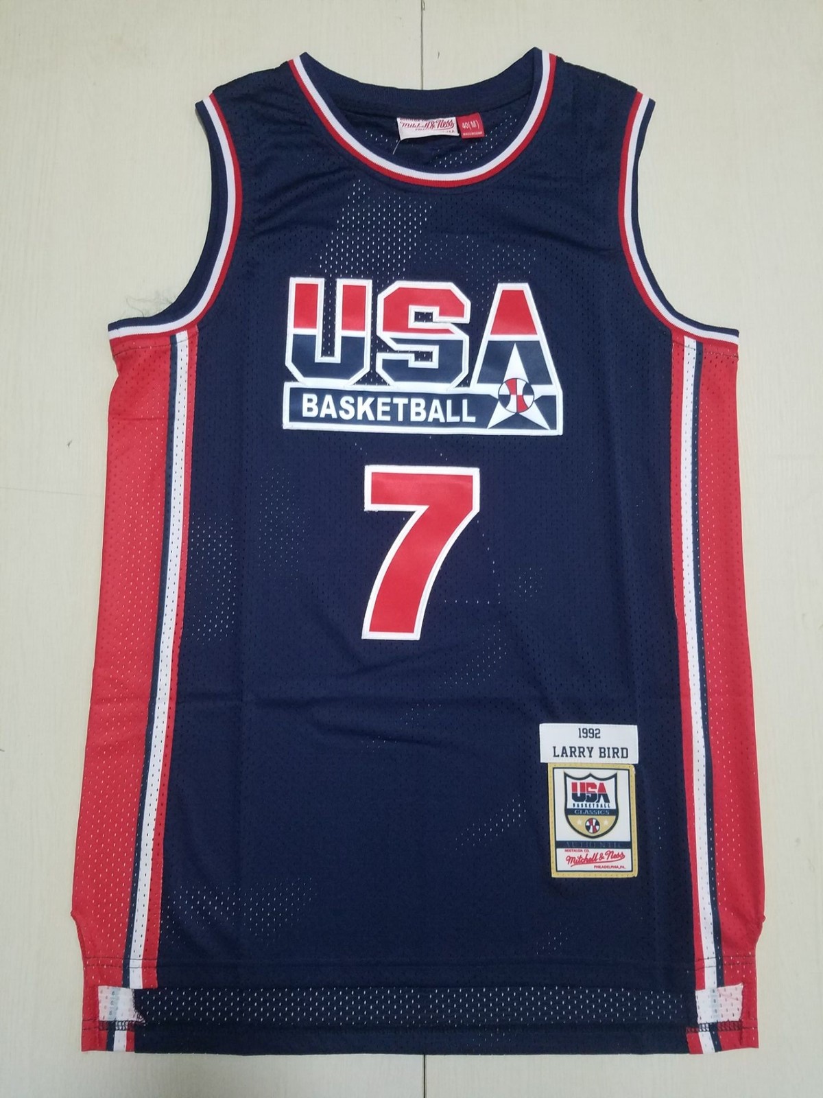 Men's Larry Bird #7 Jersey 1992 Throwback USA Basketball Navy Uniform