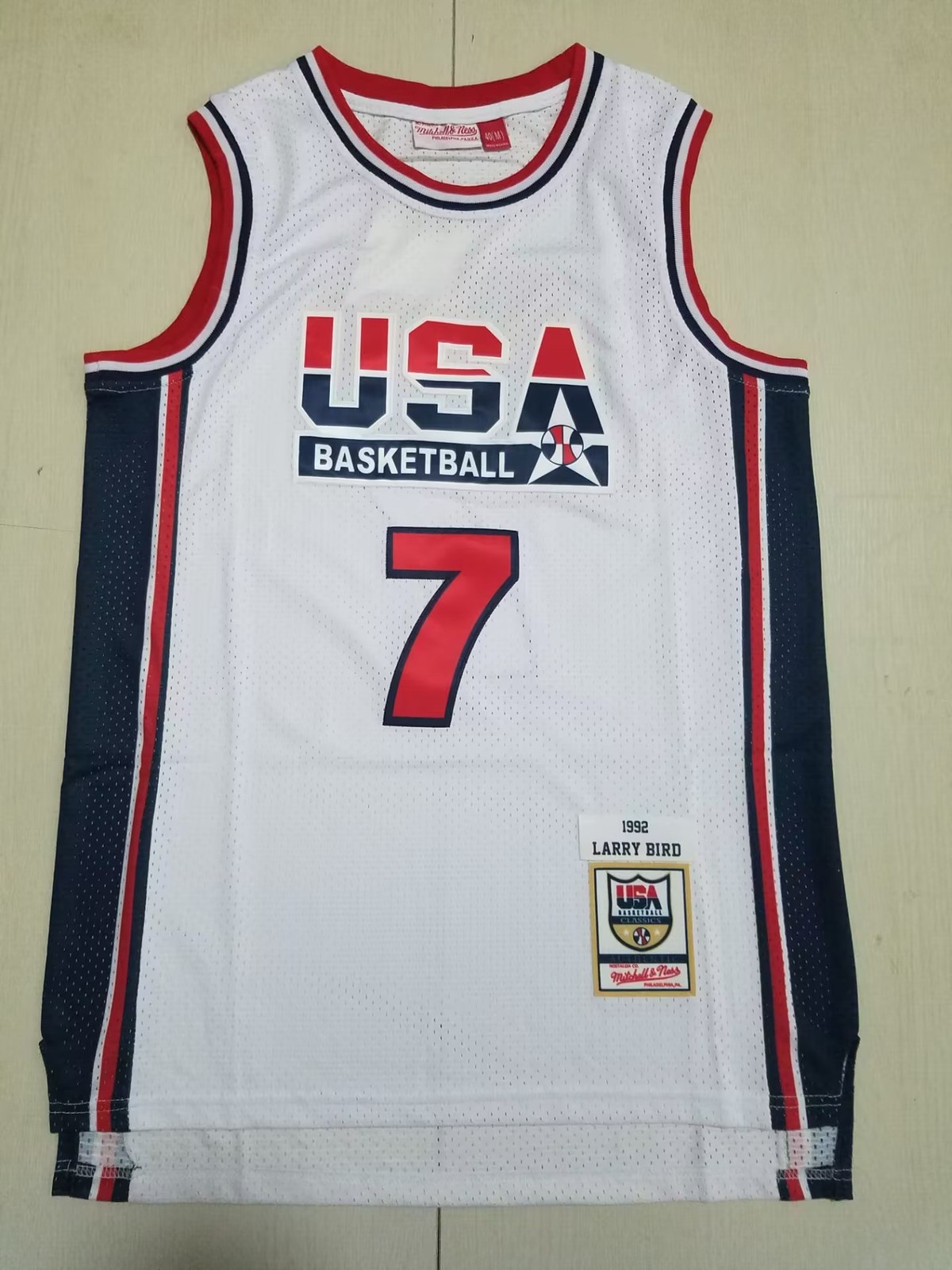 Men's Larry Bird #7 Jersey 1992 Throwback USA Basketball White Uniform