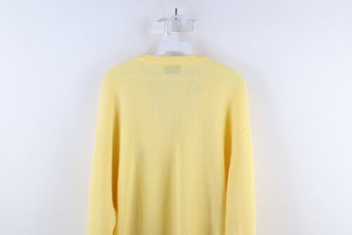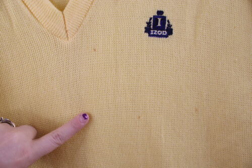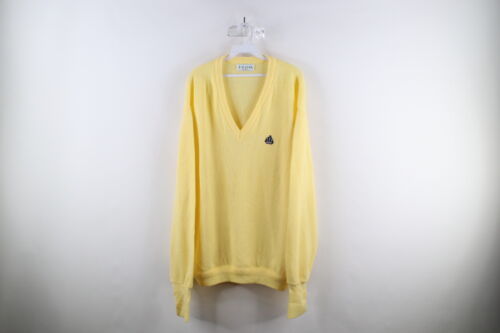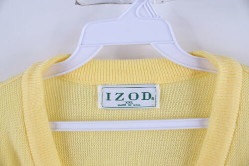Vintage 70s Izod Mens 2XL Distressed Spell Out Knit V-Neck Sweater Yellow USA