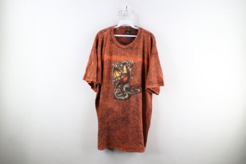 Vtg Y2K Streetwear Mens XL Faded Acid Wash Mythical Dragon Short Sleeve T-Shirt
