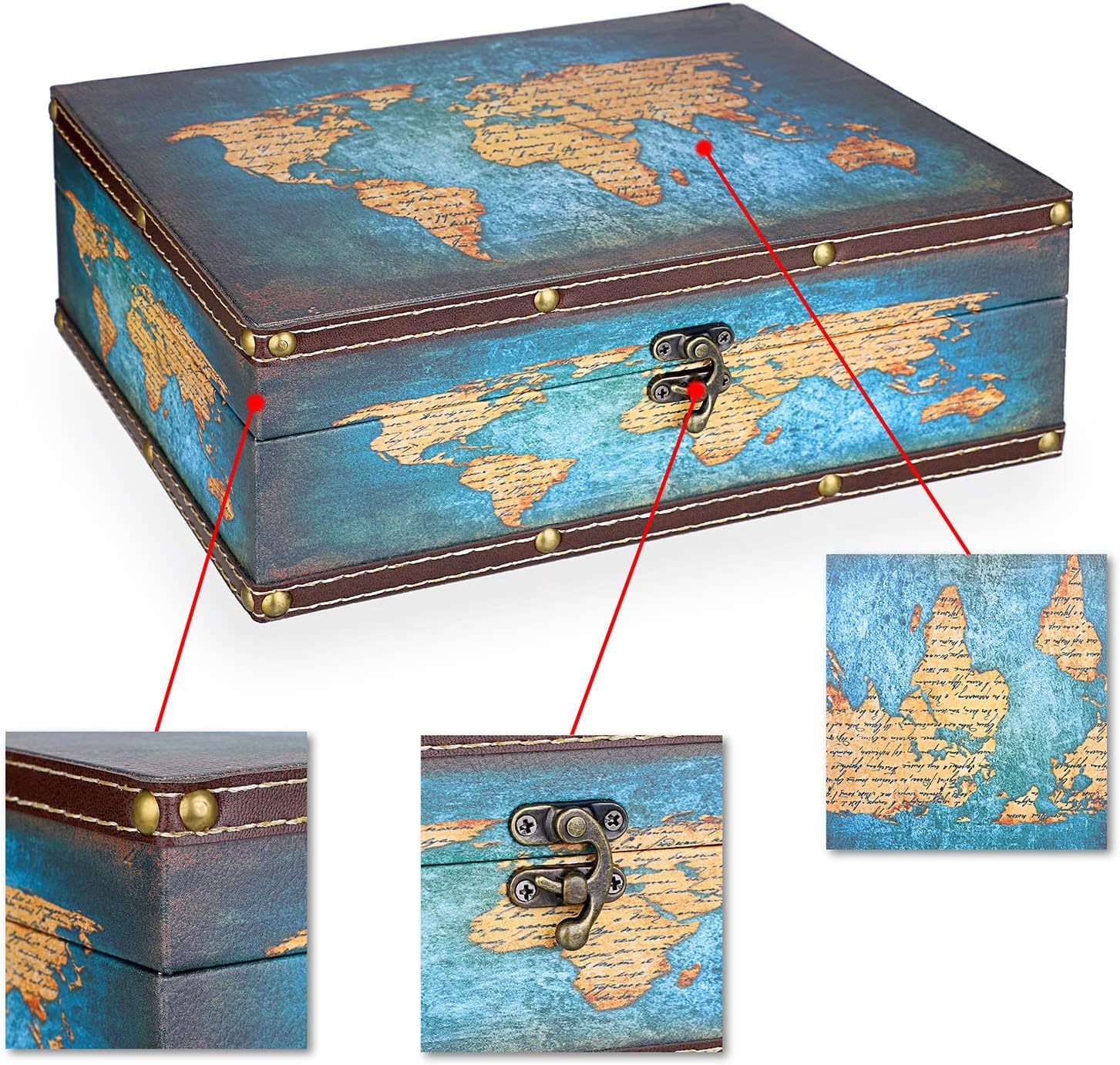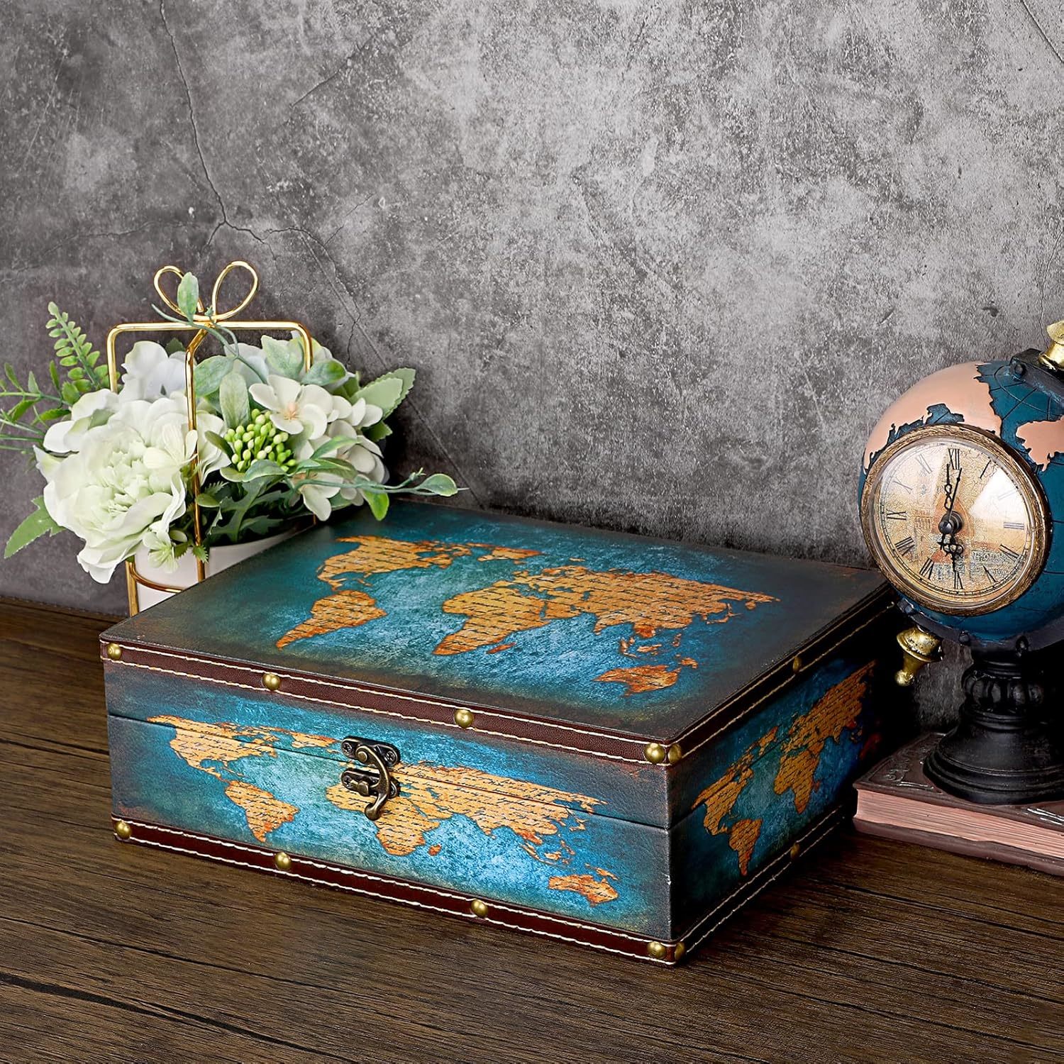 Elldoo Decorative Treasure Chest Box, Wooden + Pu Leather, Green Map Pattern
