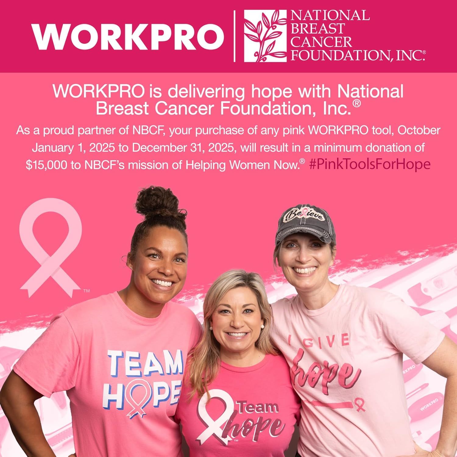 Workpro Pink Cordless 20V Lithium-Ion Drill Driver Set With 1, Pink Ribbon.
