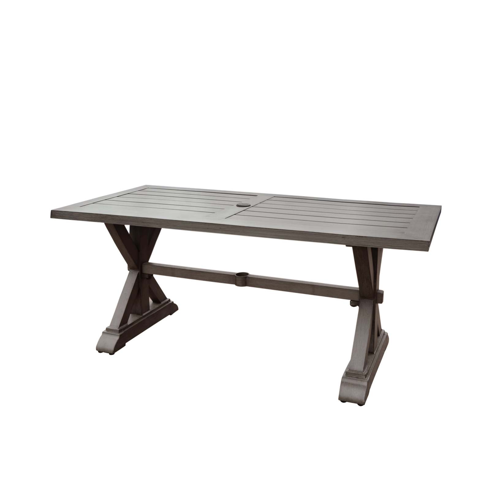 Enhance your outdoor space with a table that will bring your friends and family together for enjoyable times. This dining table offers reassuring durability and a polished look to your home, making this the perfect centerpiece for a wide variety of chairs. The legs are finished with a beautiful x-shape, bringing a rustic influence to this modern design that gives any backyard or patio space a sleek upgrade.