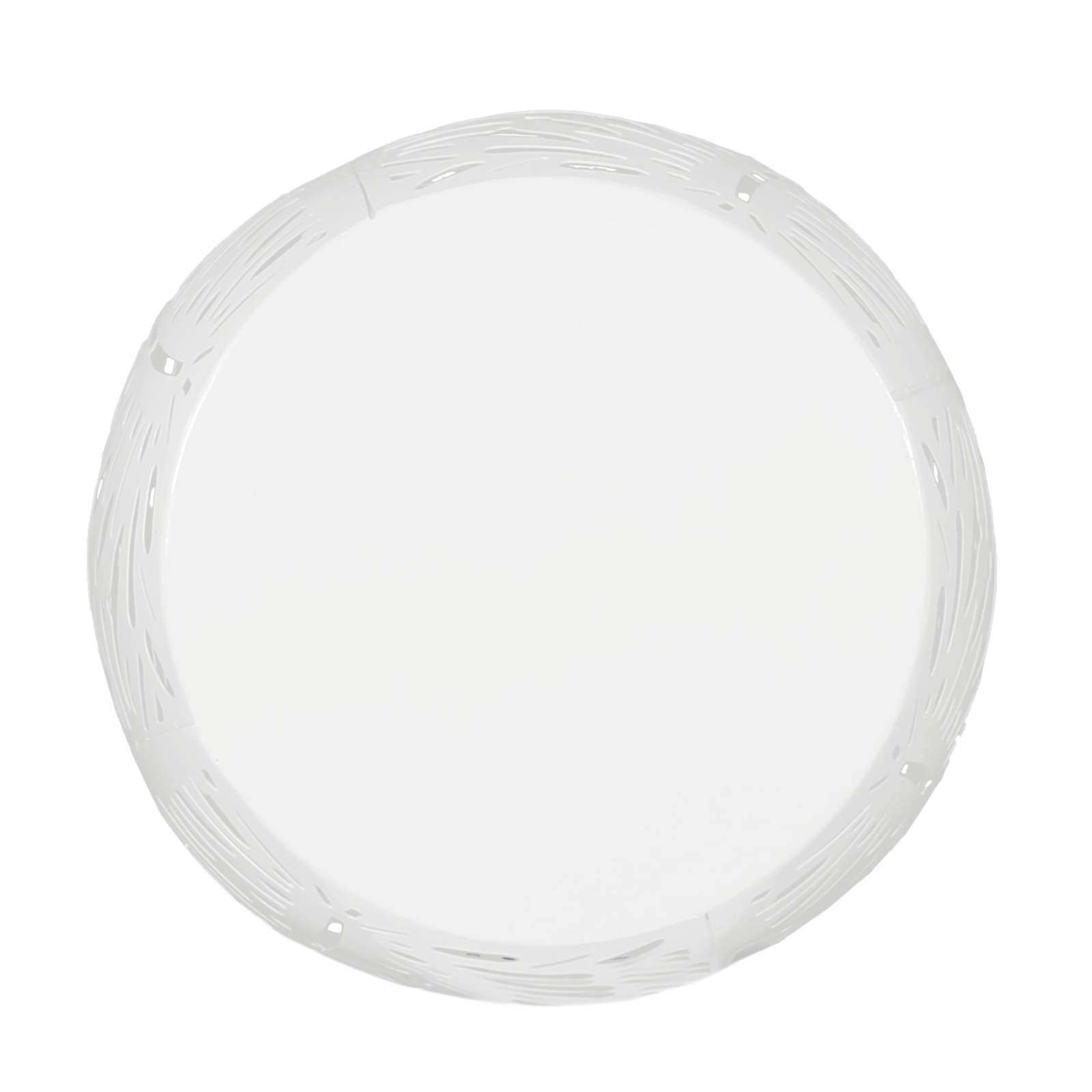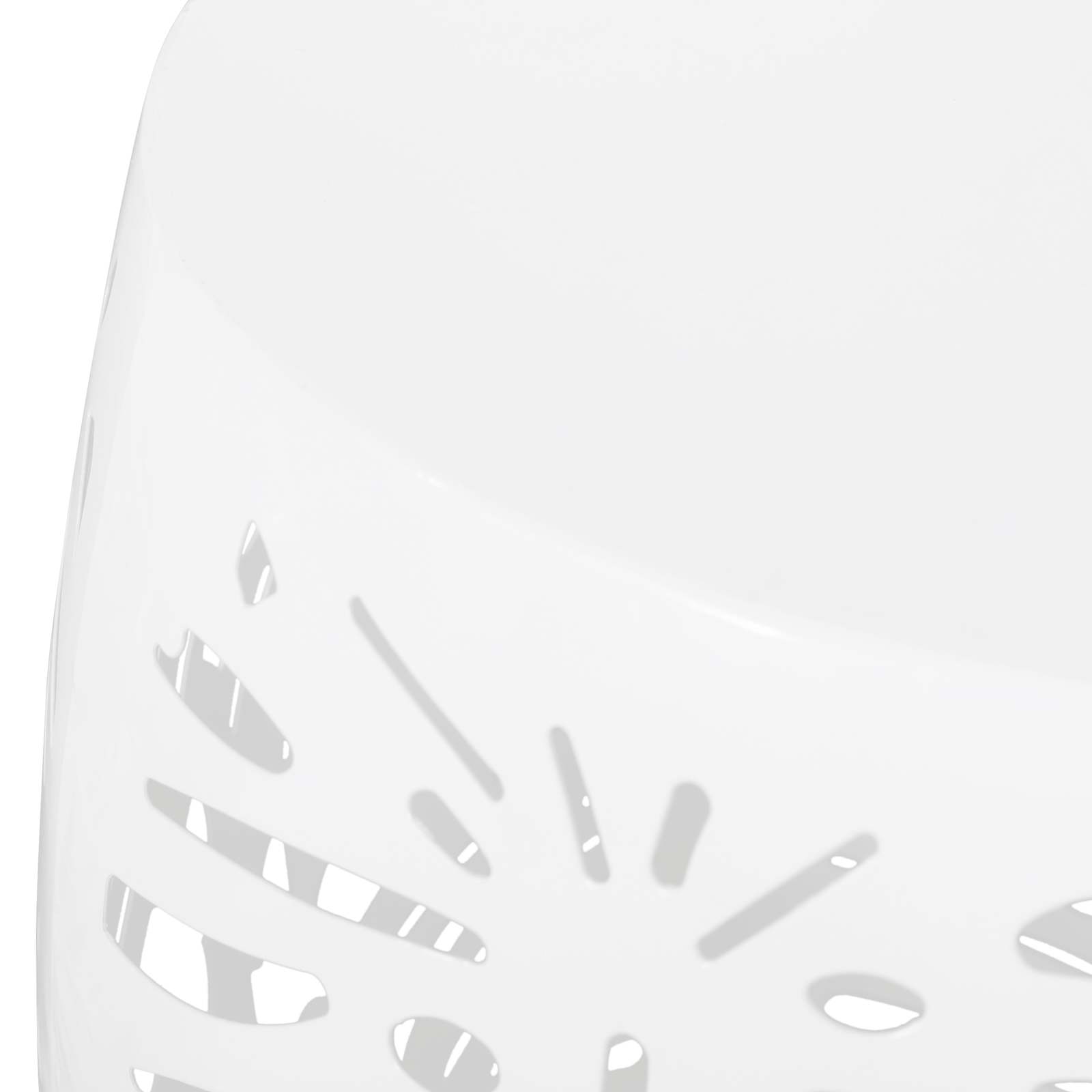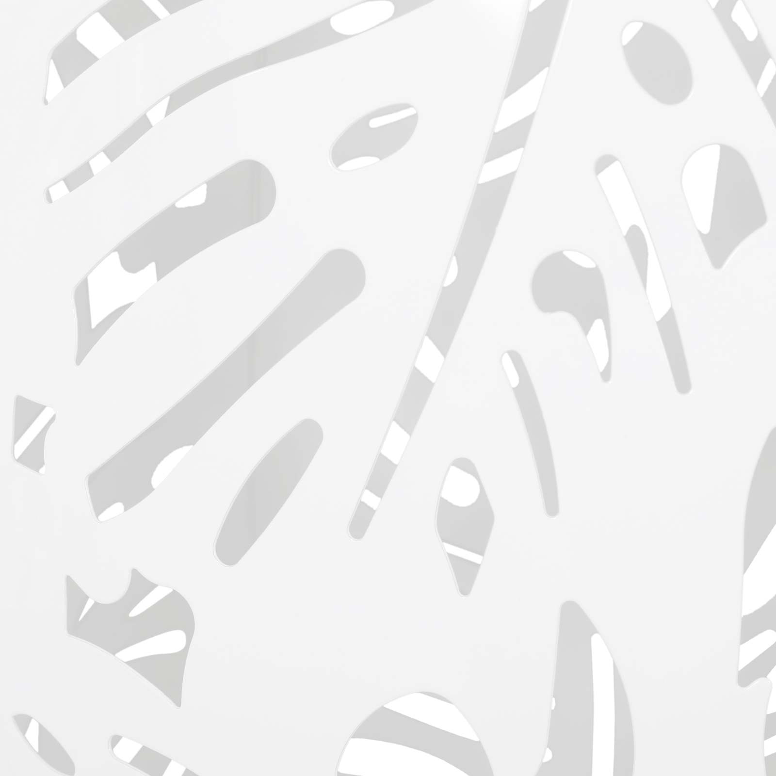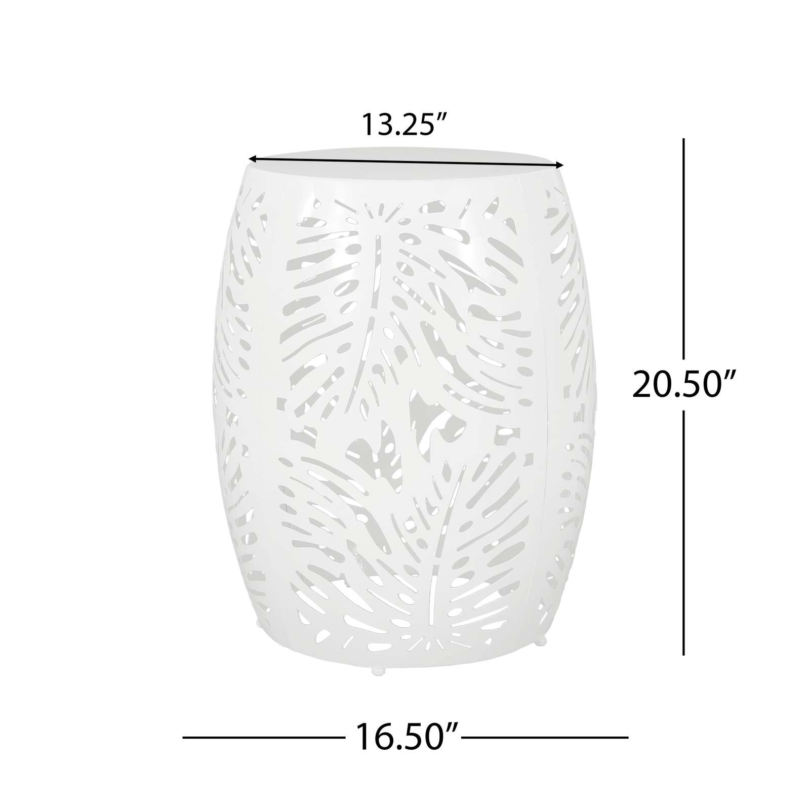 An iron cut design on the side of the table forms a tropical palm leaf pattern while allowing light to pass easily through its frame, and utilizes a barrel structure and hollow framework, bringing airy appeal to your seating arrangement, while the smooth top provides a perfect perch for pitchers of
