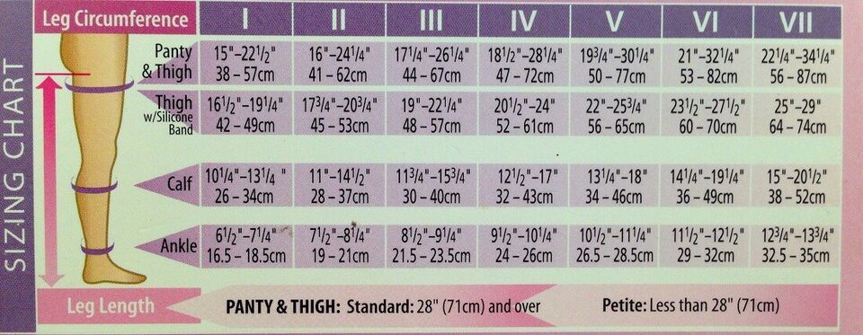 and over- Petite: Less than 15" (38cm) Panty Thigh: Standard: