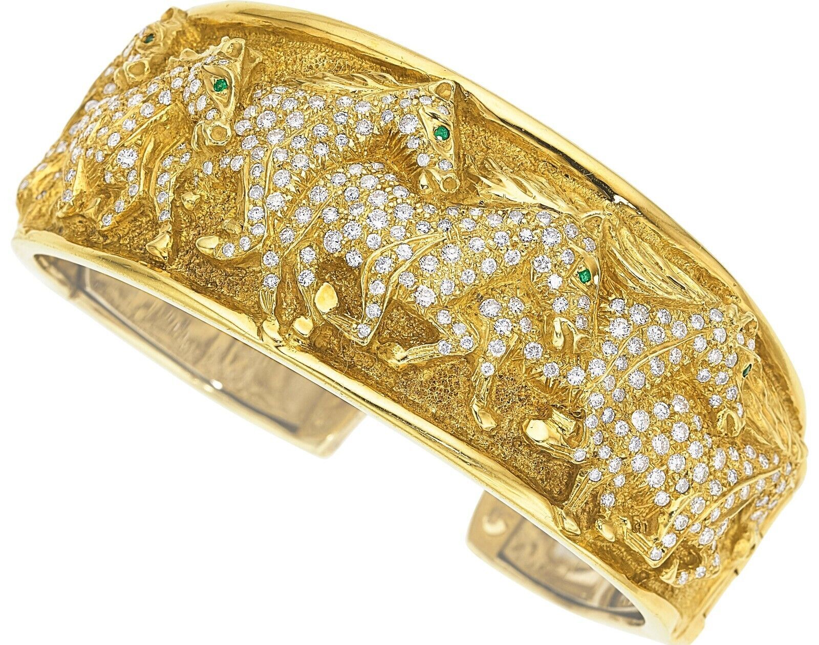 Features Horses Running in Relief with 4.5 ct Pave Diamonds and Emerald Eyes (TEW = 0.10 ct)