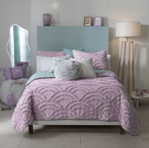 LAVENDER COLOR EMBROIDERY TEXTURE REVERSIBLE COMFORTER SET 3 PCS QUEEN SIZE
