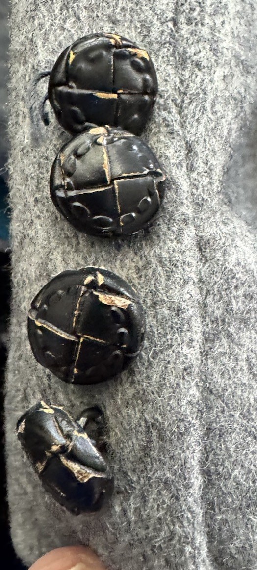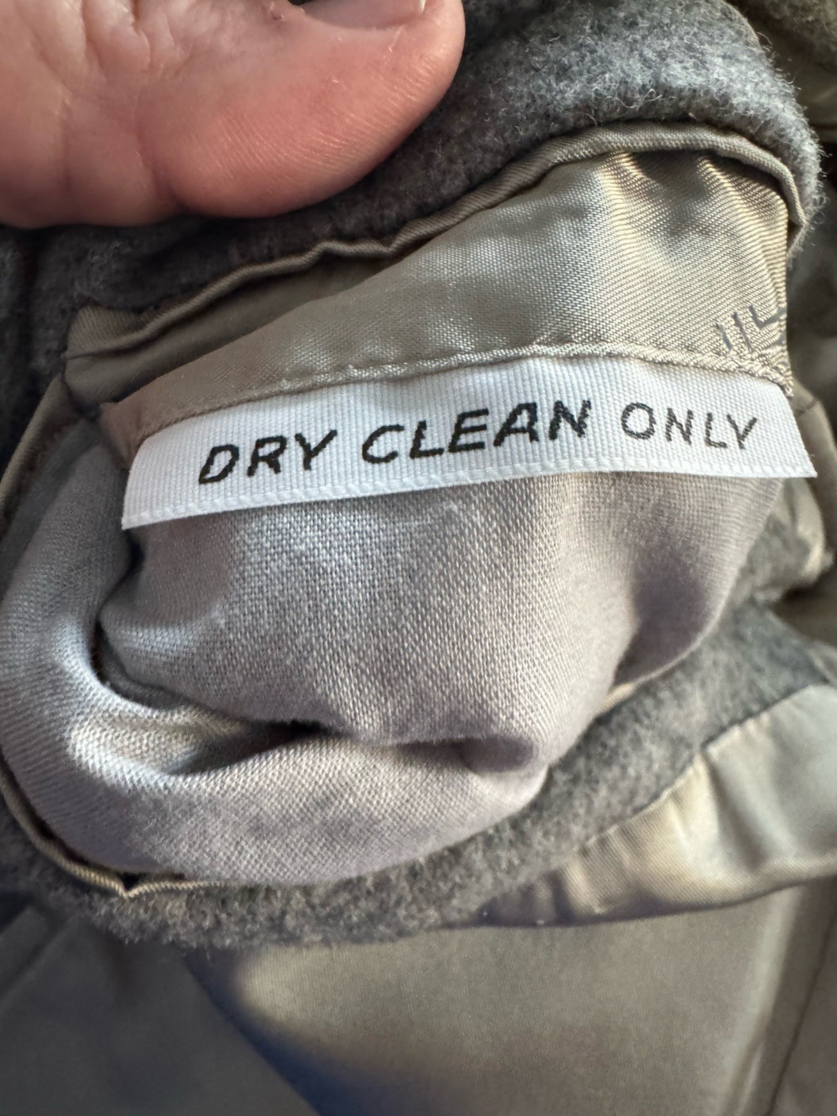 Please see pictures- dry cleaned - small stain on inside sleeve shown in pics- size tag has been worn off - size small per measurements