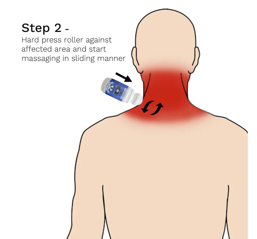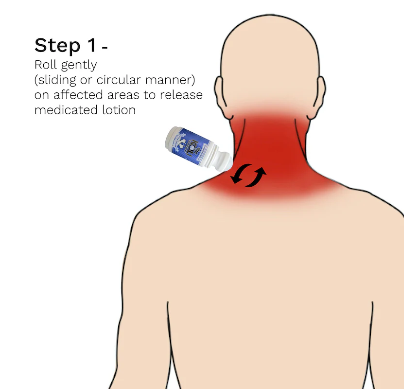 Apply using the massage roller in a sliding manner onto affected area for instant relief.