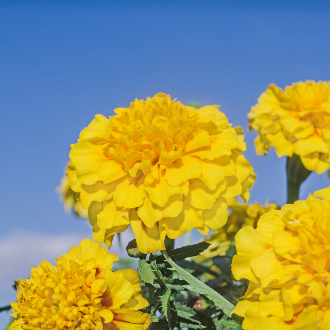- Yellow African Marigold variety featuring bright and cheerful, yellow flowers