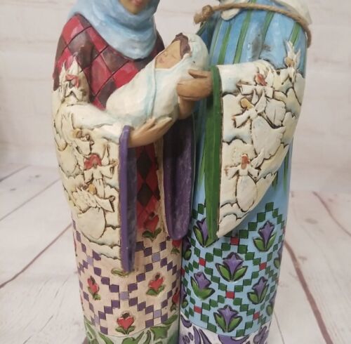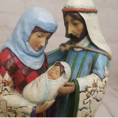 .Holding their baby sweetly, new parents Mary and Joseph try to imagine the fantastical life the little boy will lead. Wrapped in blankets, the newborn king coos sweetly in this stunning Jim Shore effigy.