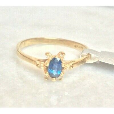 14K YELLOW GOLD LONDON BLUE TOPAZ DIAMOND RING SIZE 7.25 SKY