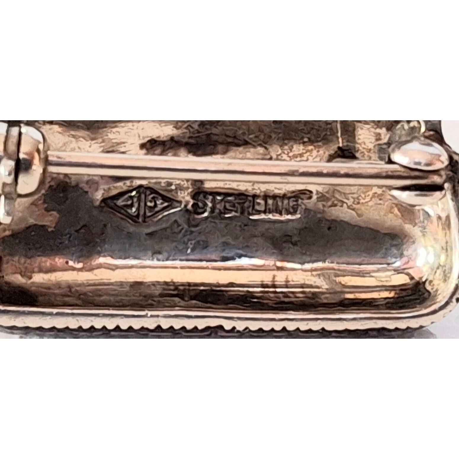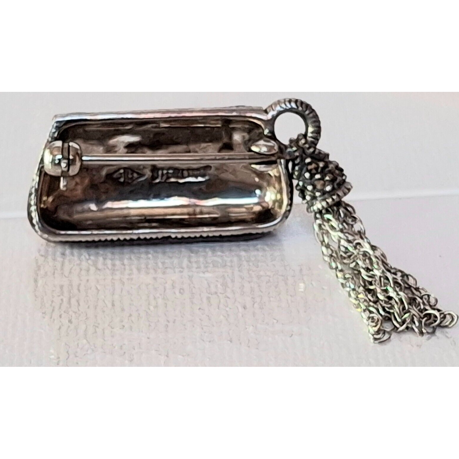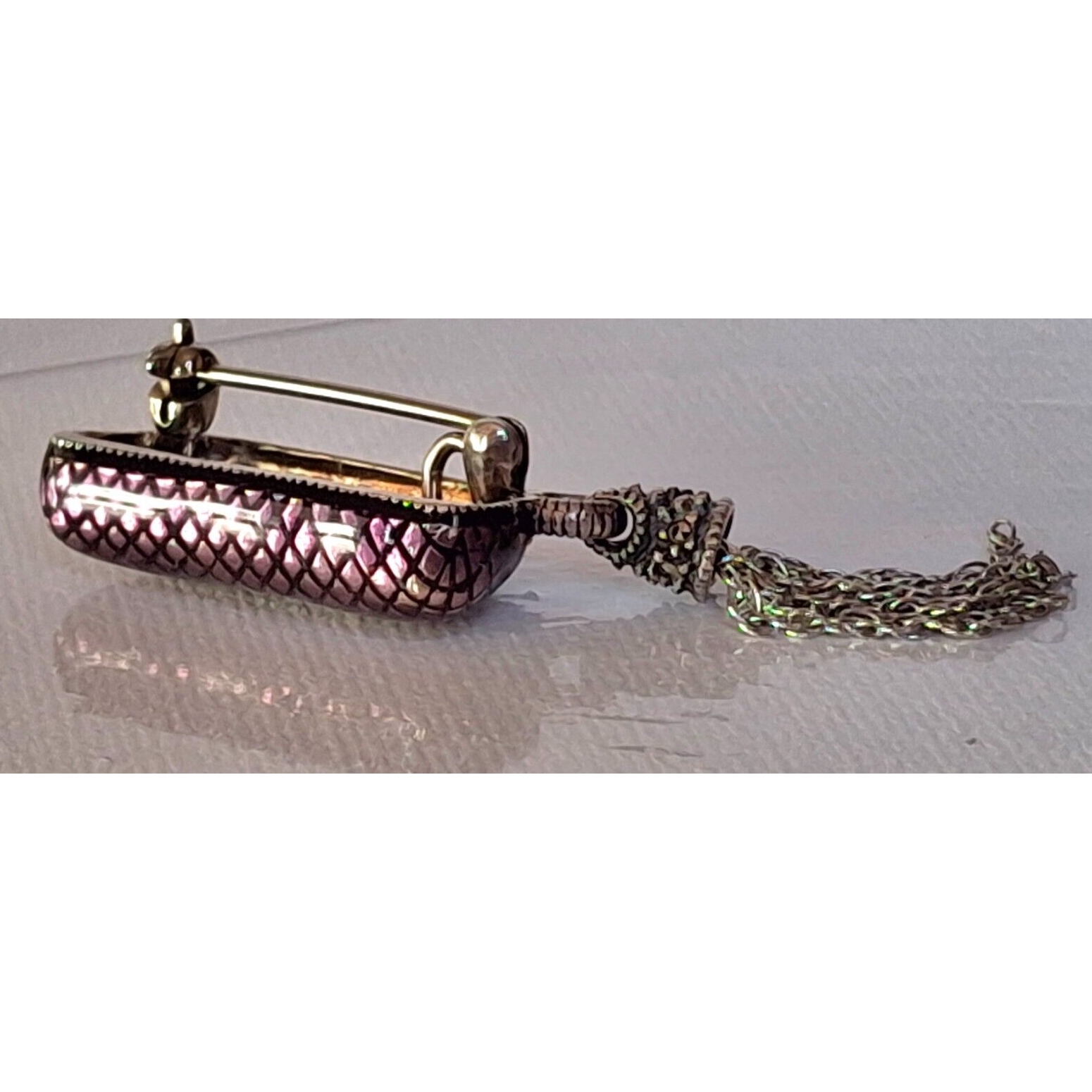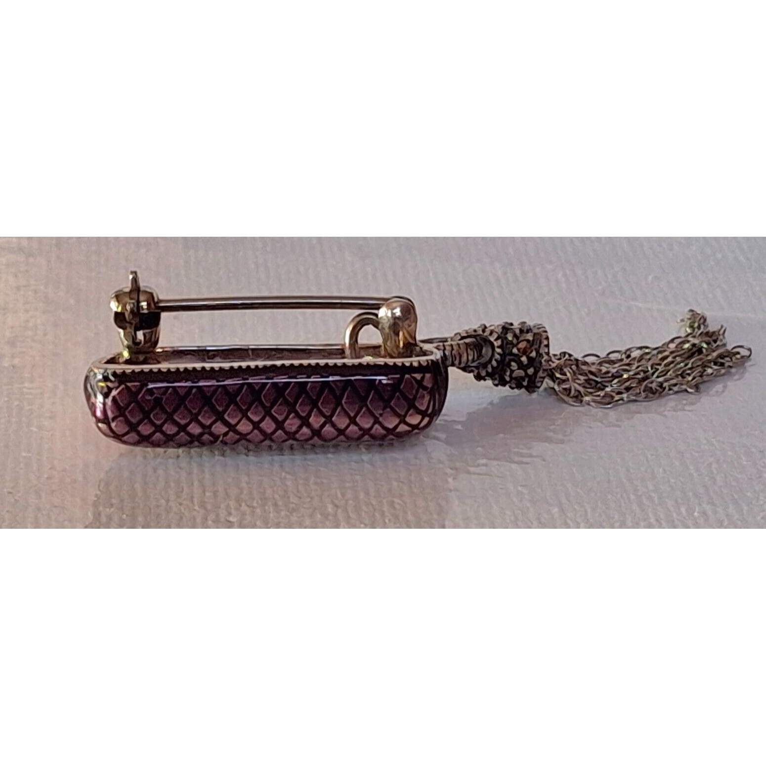 925 STERLING SILVER AND PURPLE ENAMEL PURSE CLUTCH BROOCH SKY