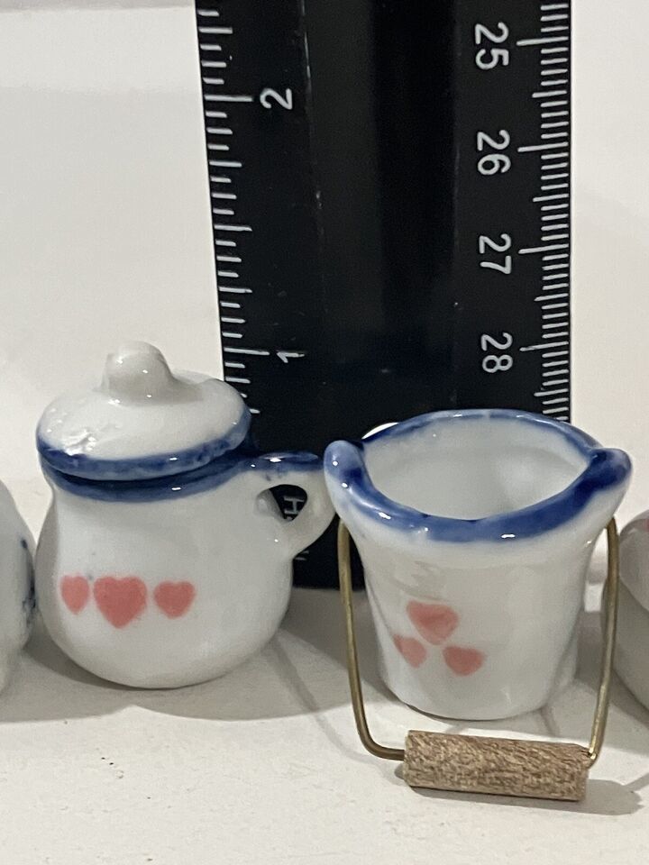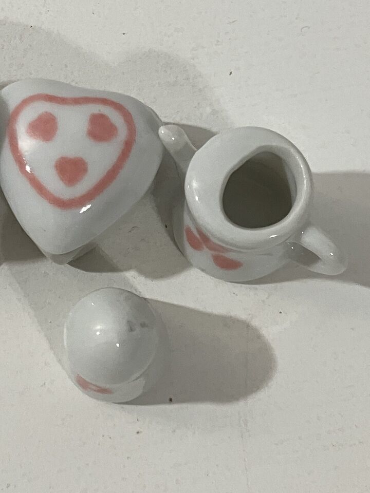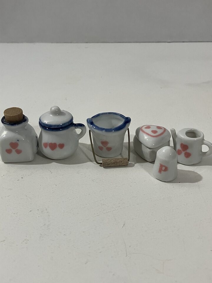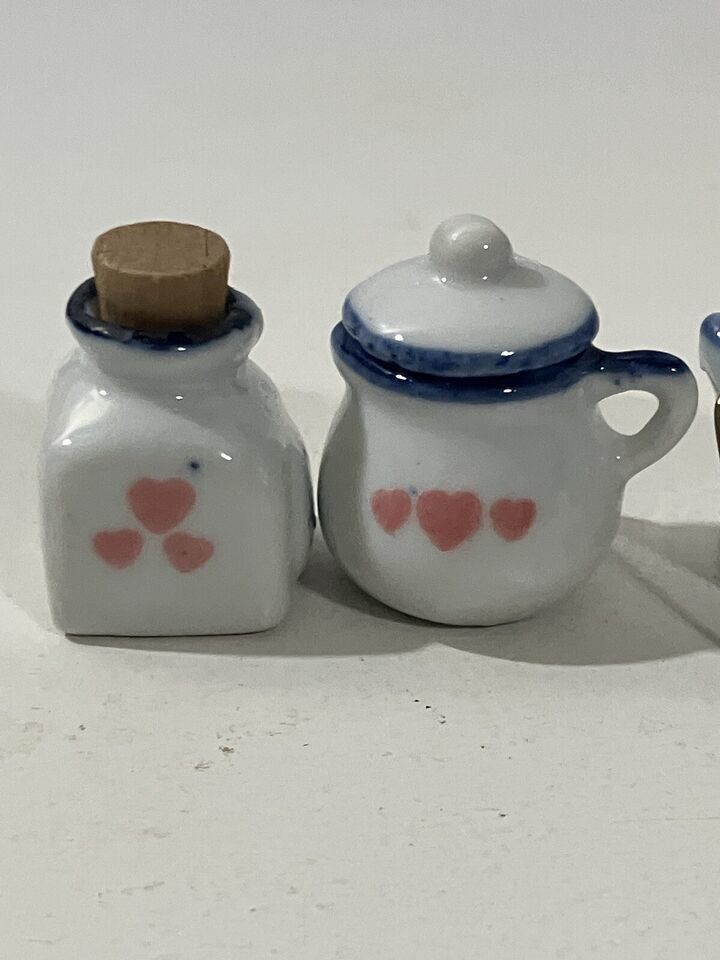 Vintage Lot Of Miniature Doll House Ceramic Kitchen Set White With Pink Hearts