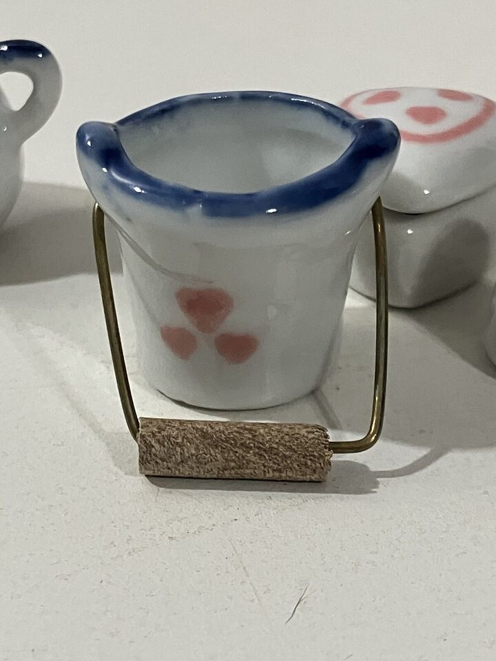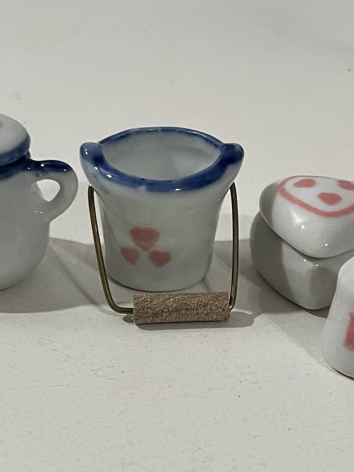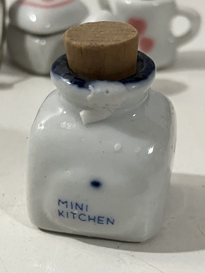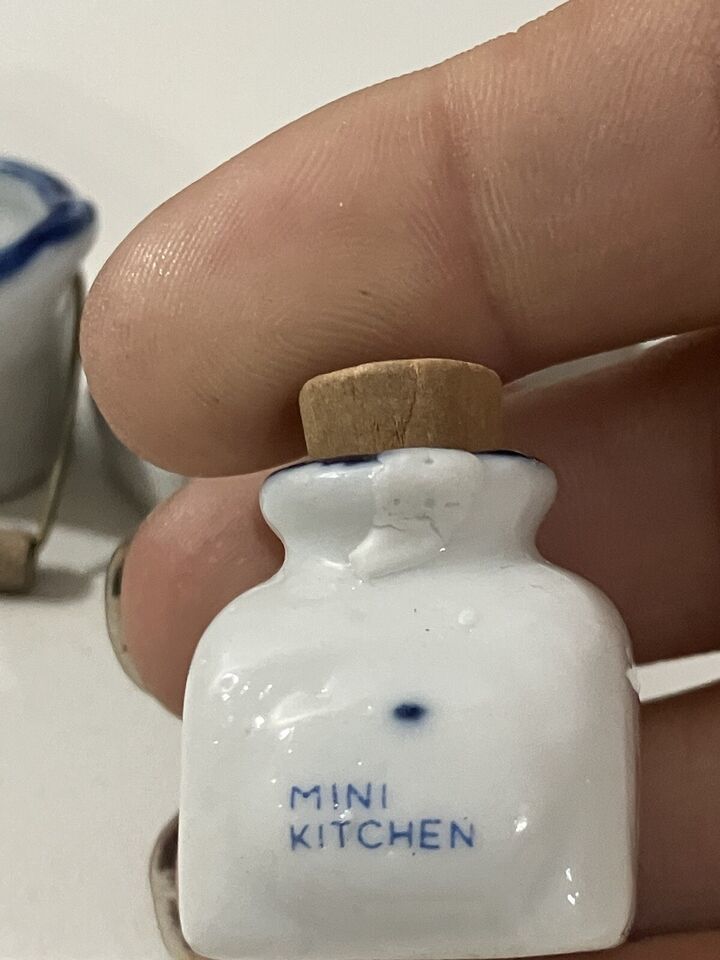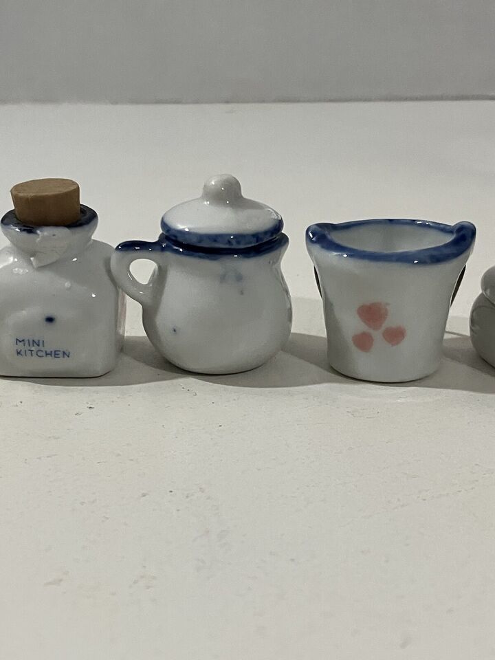 This is a cute little set of Mini Kitchen dollhouse decor. They are in really good condition and cute for decorating a little kitchen or dining room. No chips or cracks.