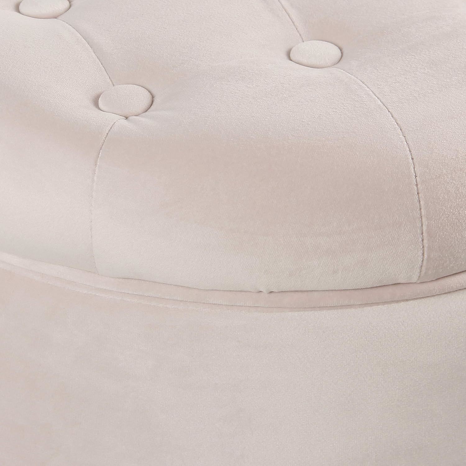 100% Polyester OTTOMAN WITH STORAGE: Our Velvet Tufted Ottoman is a small and stylish storage solution for lingering accessories, and flawlessly integrates into any existing living room or bedroom furniture ROUND OTTOMAN STOOL: Created with a soft and durable velvet, our classic Foot Rest Ottoman features over button tufting and is perfectly completed with wood legs in a striking finish to offer timeless style OTTOMAN WITH STORAGE FOR LIVING ROOM: Weighing at 14.3 lbs our Round Ottoman Storage supports a capacity of up to 250lbs VELVET OTTOMAN CARE CLEANING: Easy to assemble maintain | Spot clean only OTTOMAN FOOT REST DIMENSIONS: 18 Inches High x 19 Inches Wide x 19 Inches Deep