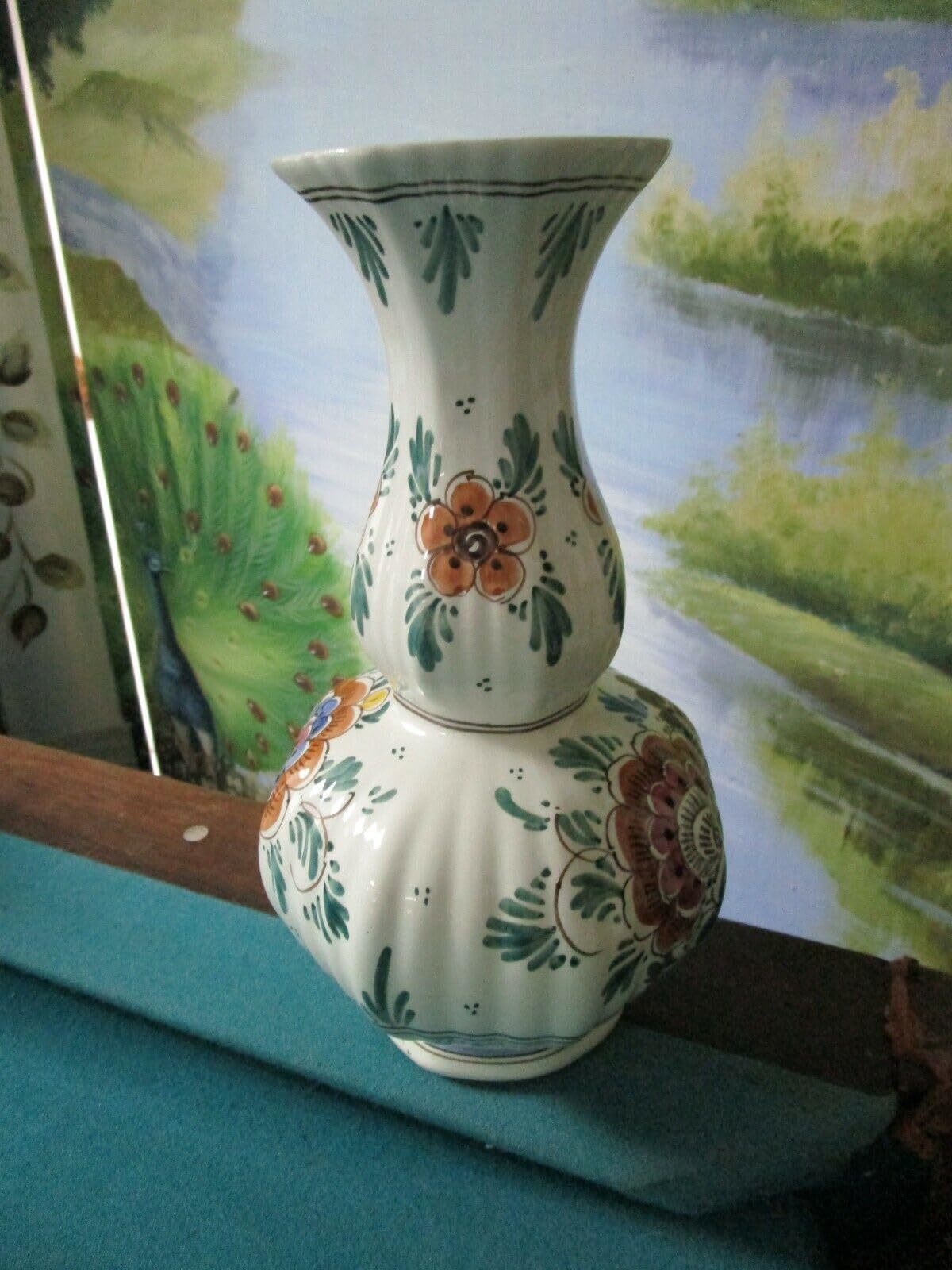 2- DELFTS HOLLAND POLYCHROME VASE HAND PAINTED 10 3/4 # 200