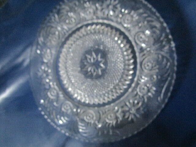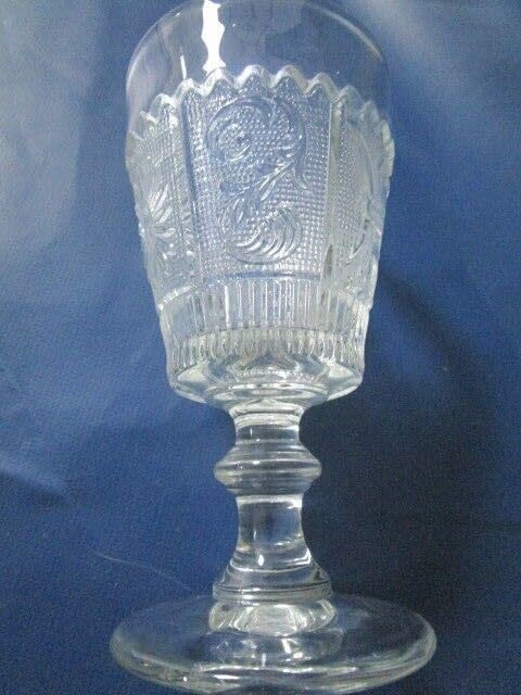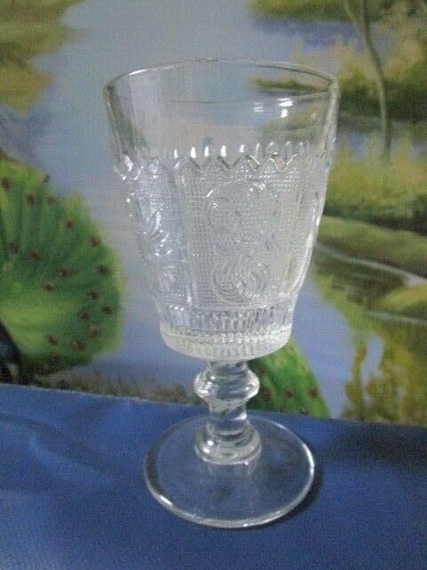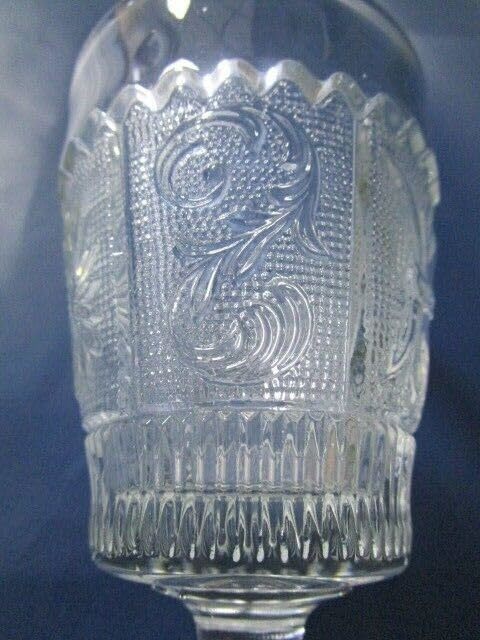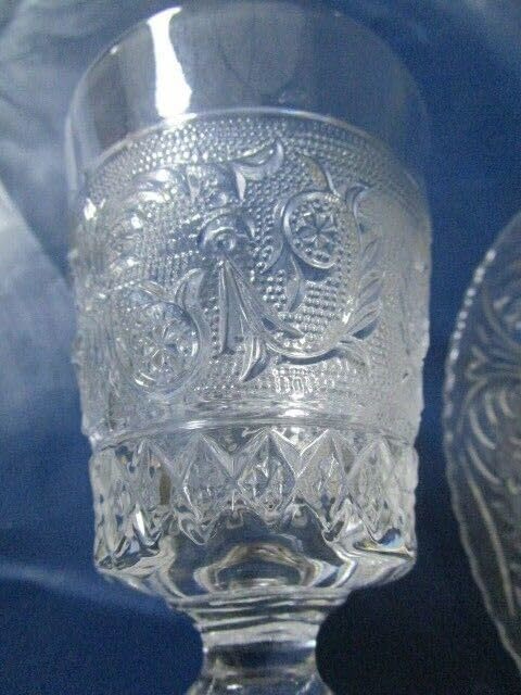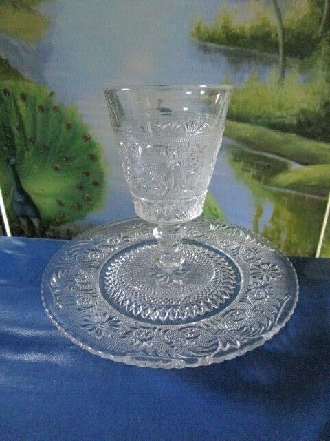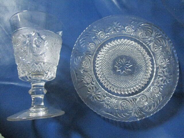 Duncan Miller ~ Sandwich Westmoreland Princess Feathers Clear Glass tea goblet and plate set /4 goblets pick15 3/4" tall