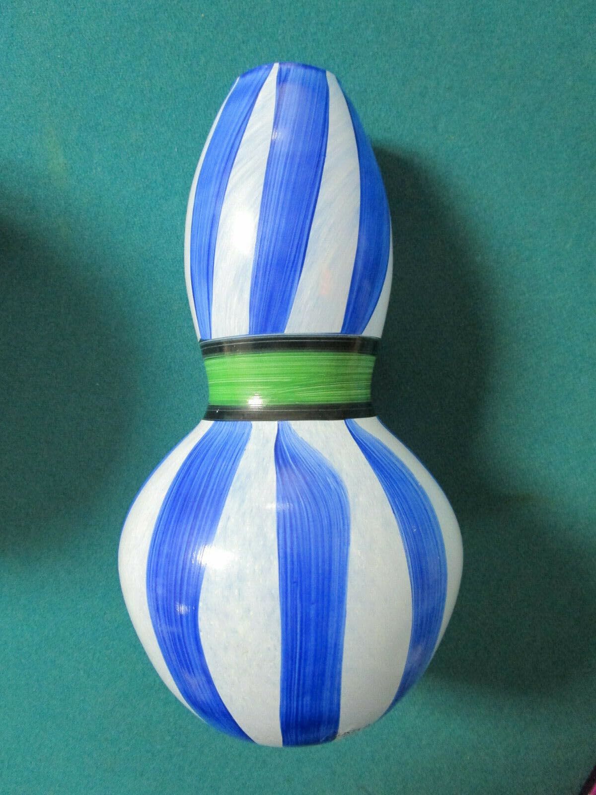 BLUE WHITE GREEN VASE 49802 BY Ann Warff 8" NIB RACK9 [FFBX]