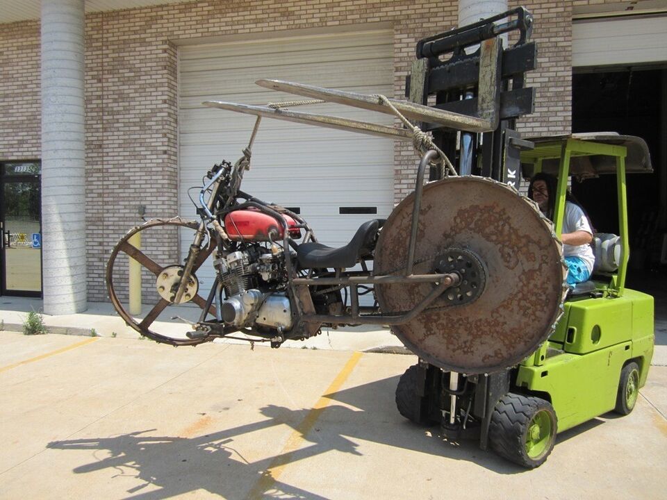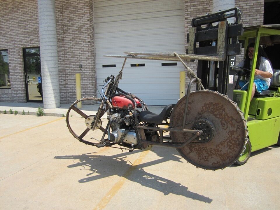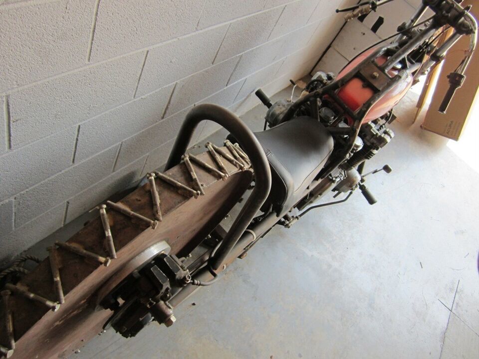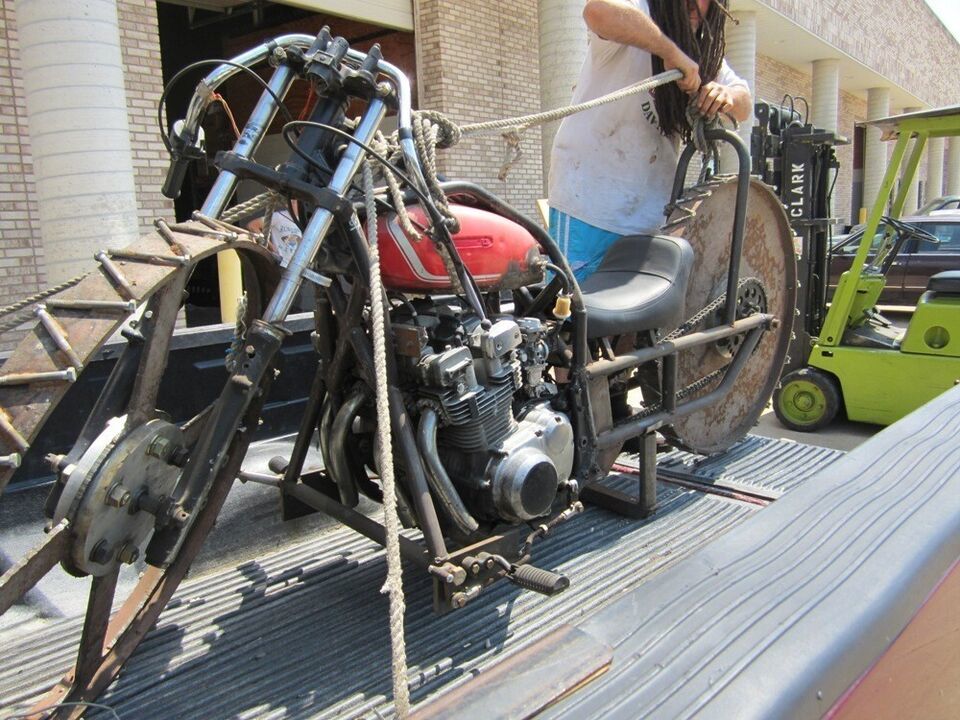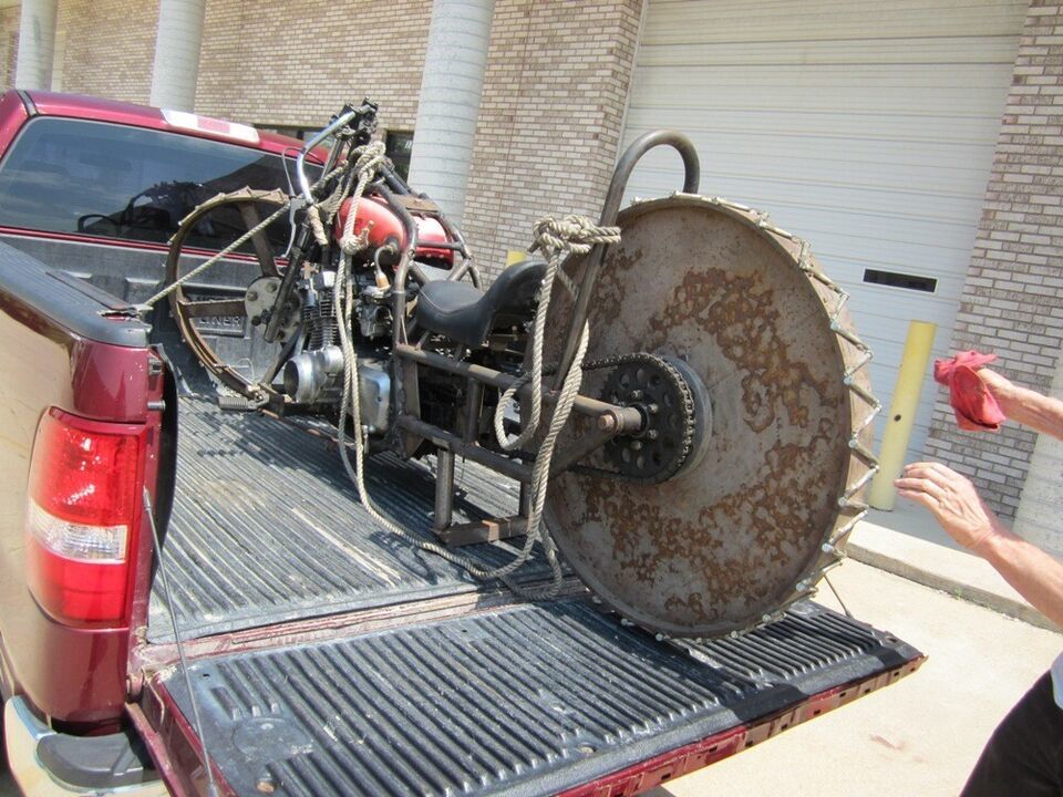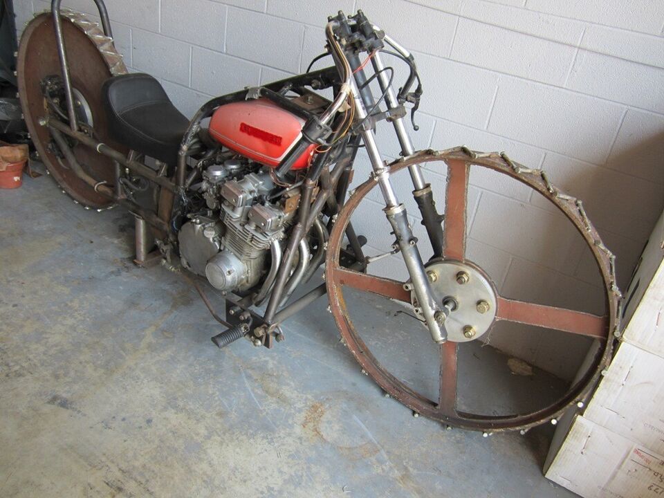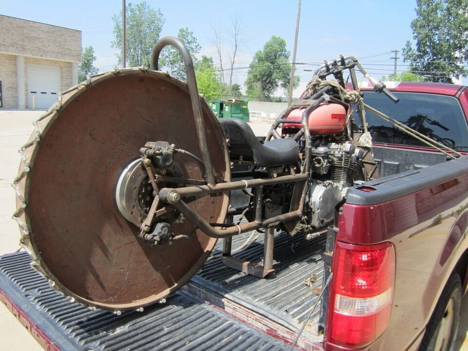 This motorcycle was built on a TV show called Motor City Motors, and on the show they drove it around an ice rink. I was able to find the show and watch it-I found it on I-Tunes. I was told that it still runs, but who would think to ride it? It comes with the title, and the title will need to be transferred. It is one of a kind, and I even think it was built be a lady.