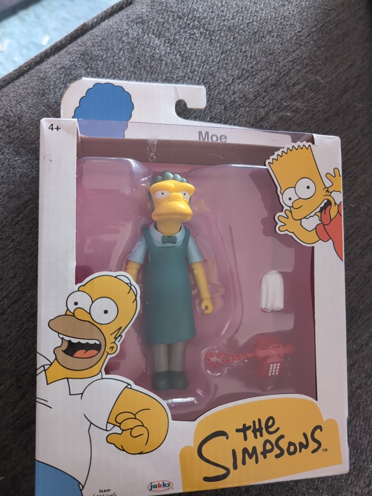 With attention to detail that captures Moe's iconic look, this action figure is a must-have for collectors and enthusiasts. The vibrant red phone and towel props enhance the figure's portrayal, making it an outstanding addition to any Simpsons collection. Whether displayed or played with, this action figure brings the humor and nostalgia of the series right into your home.