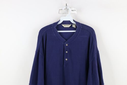 Vintage 90s Eddie Bauer Mens 2XL XXL Faded Thermal Waffle Knit Henley T-Shirt