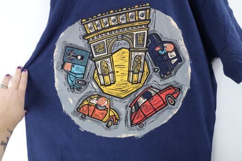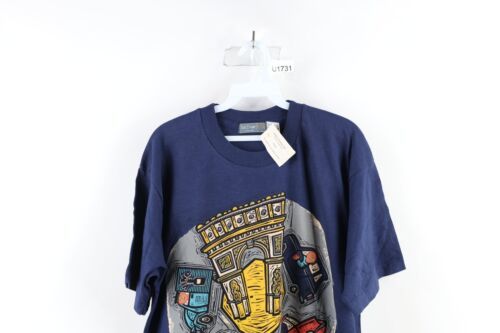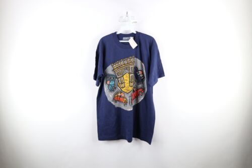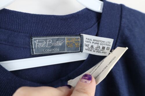 NOS Vtg 90s Paul Bristow Mens Large Art Short Sleeve T-Shirt Navy Blue Cotton