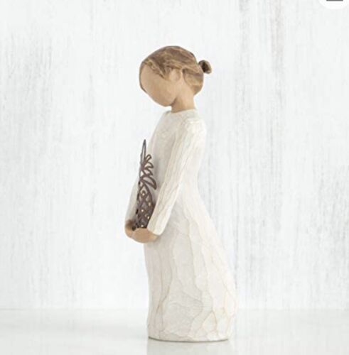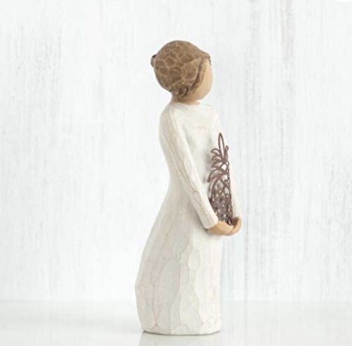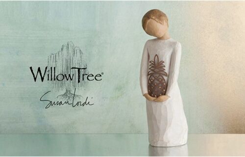 Willow Tree sculptural art forms beautifully express love, closeness, healing, courage, hope? all the emotions of a life well lived. Artist Susan Lordi hand carves the original of each figure from her studio in Kansas City Missouri. Pieces are cast from her original carvings, and individually painted by hand. Expression is revealed through gestures only? a tilt of the head, placement of the hands, a turn of the body. The simplicity of form and absence of facial features signify Willow Tree. It is Susan?s hope that these pieces be meaningful to both giver and receiver.
